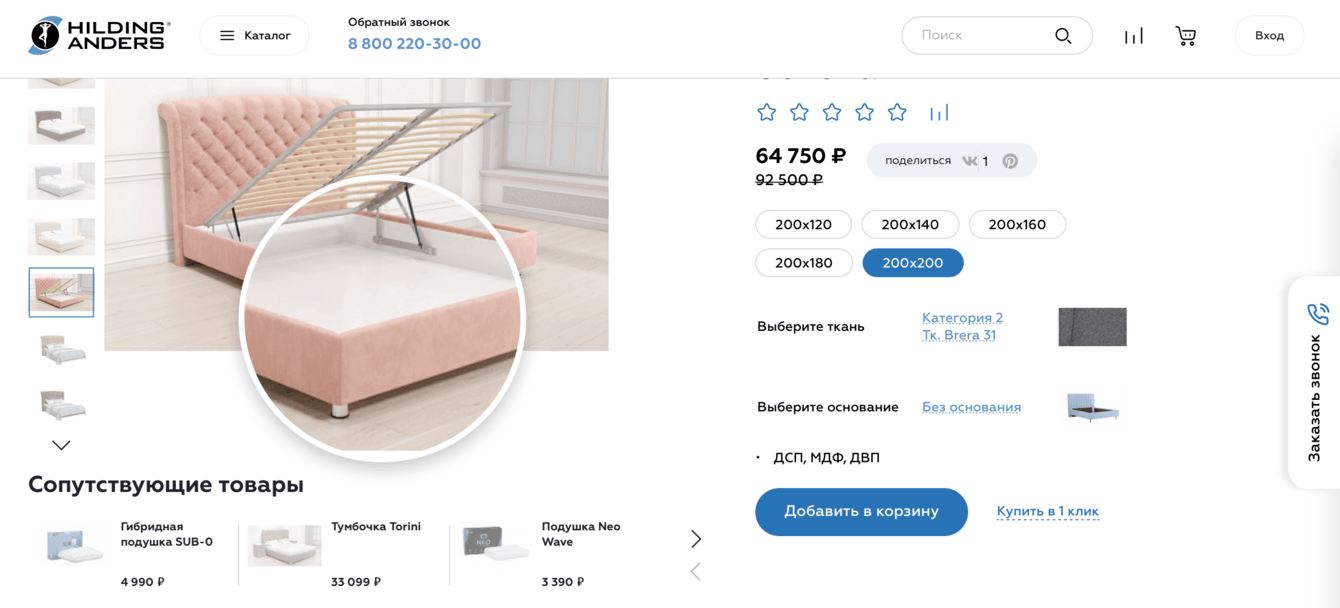 Конфигуратор кроватей со смарт-фильтрами и “умным” заполнением карточки товара - основная функциональная особенность интернет-магазина. Покупатель может буквально “собрать” кровать, отфильтровав ее составляющие - ножки, декор, текстиль, основание. Уникальность проекта в том, что у одного товара может быть до 600 вариантов в зависимости от фильтра. Заполнение карточки товара происходит теперь на самом сайте, в визуально приятном и удобном интерфейсе. Решение 1С, которое использовал клиент, не давало возможность выгружать характеристики товара на сайт, только цену. Но с использованием фильтров, цена должна меняться. Благодаря разработанному решению клиент получил автоматизированный конфигуратор, который при изменении характеристики товара выдавал корректную цену.