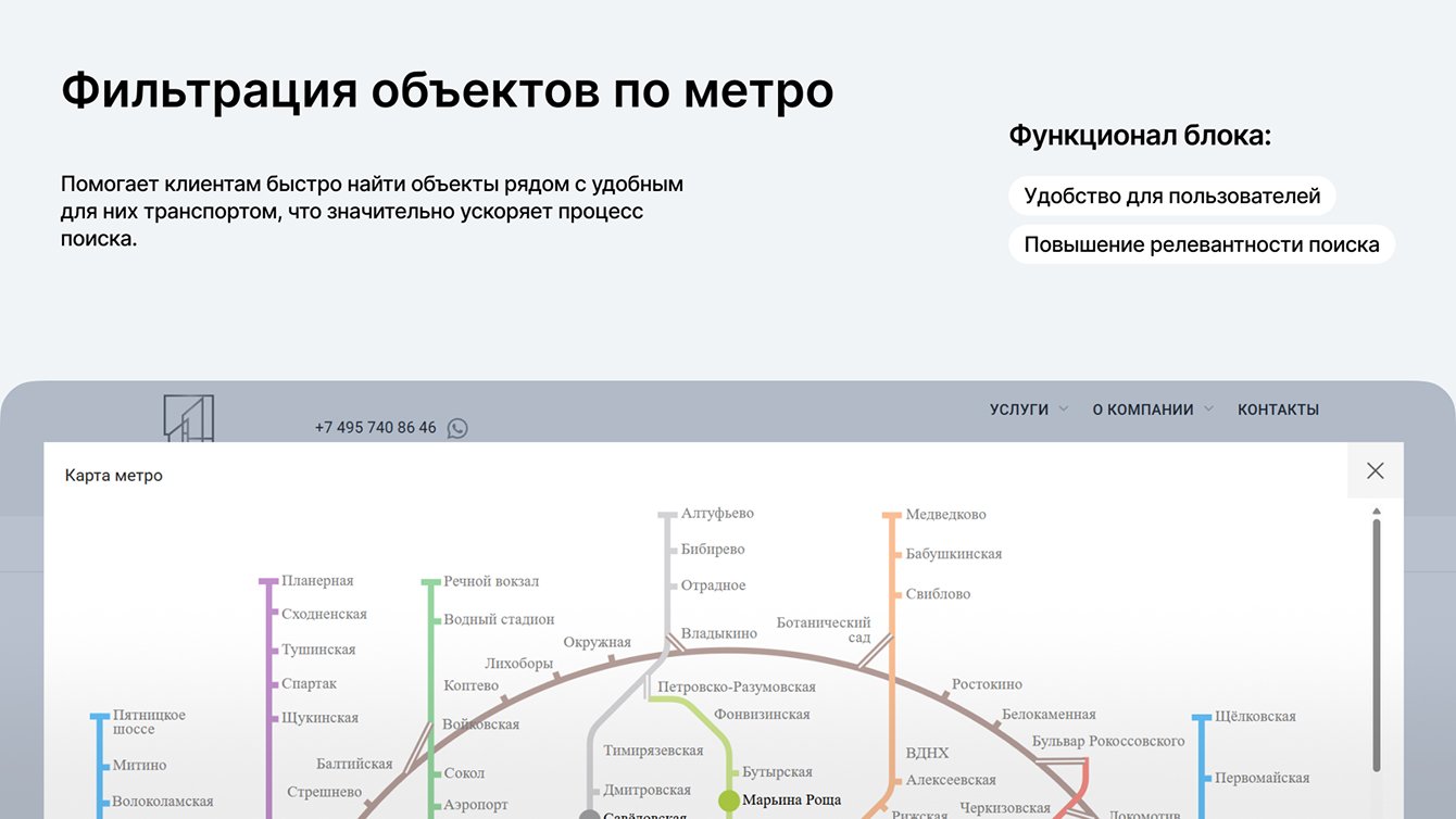 Для покупателей и арендаторов важна не только цена или площадь недвижимости, но и удобство расположения. Возможность фильтровать объекты по ближайшей станции метро помогает повысить точность и релевантность выдачи, соответствующую запросам клиентов.