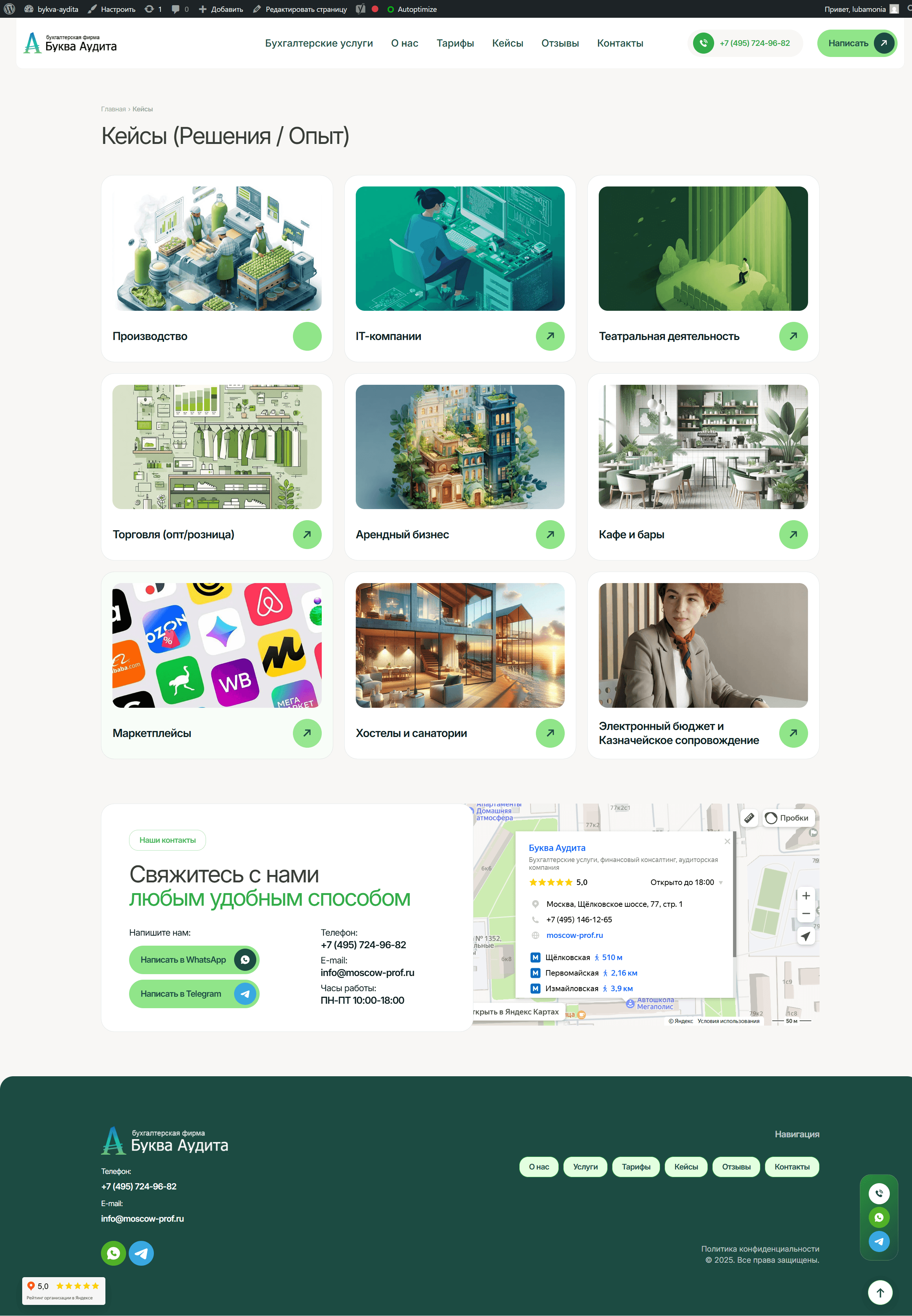 Полный редизайн и перенос старого сайта на новую CMS (WordPress) с сохранением и улучшением функциональности, SEO-структуры и юзабилити. Цель — повысить конверсию, улучшить восприятие бренда, увеличить количество заявок и укрепить доверие клиентов через современный дизайн, структурированную информацию и интеграцию с Яндекс.Картами и отзывами.