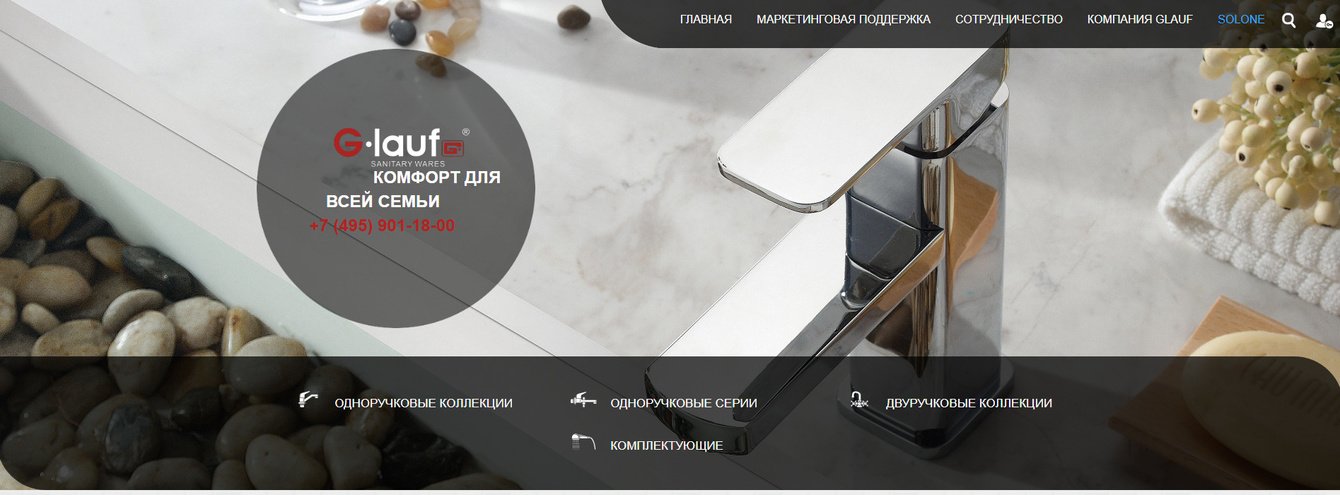 Новый китайский производитель сантехники G.lauf заходил на российский рынок, и ему требовался современный сайт с удобным каталогом и возможностью распространять маркетинговые материалы для дилеров.