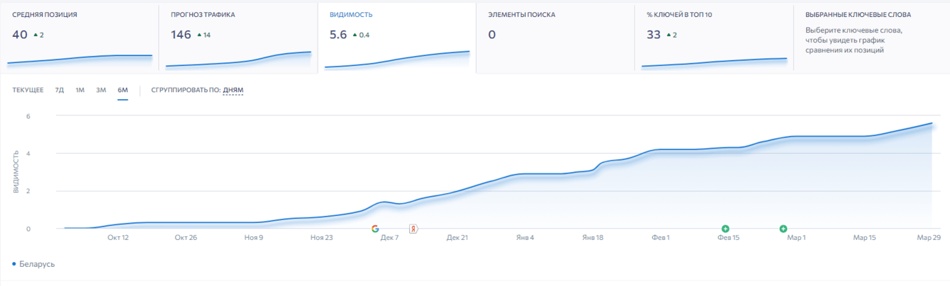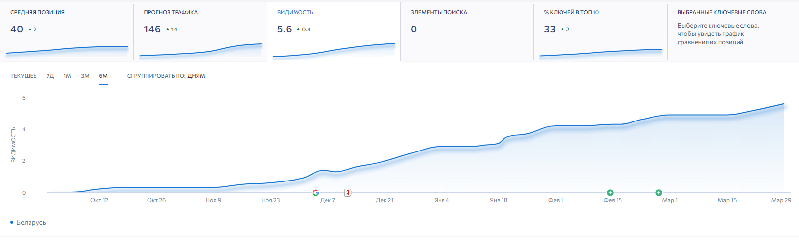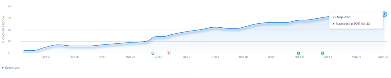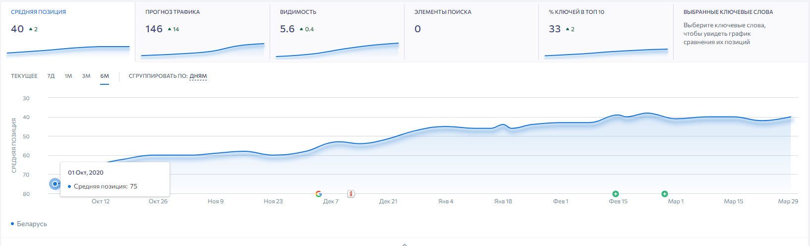 Средняя позиция в Goole подросла с 75 до 40 позиции