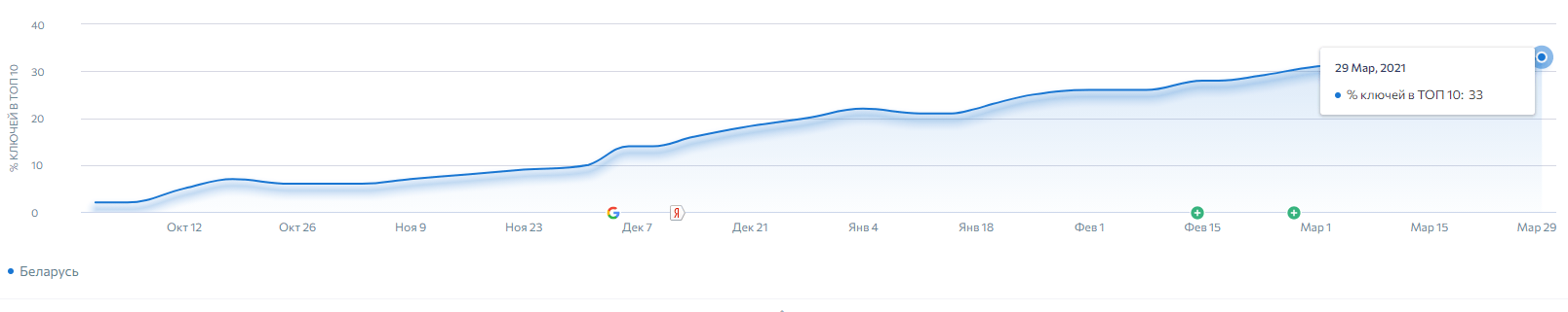 Процент ключей в ТОП 10 увеличился почти в 16,5 раза