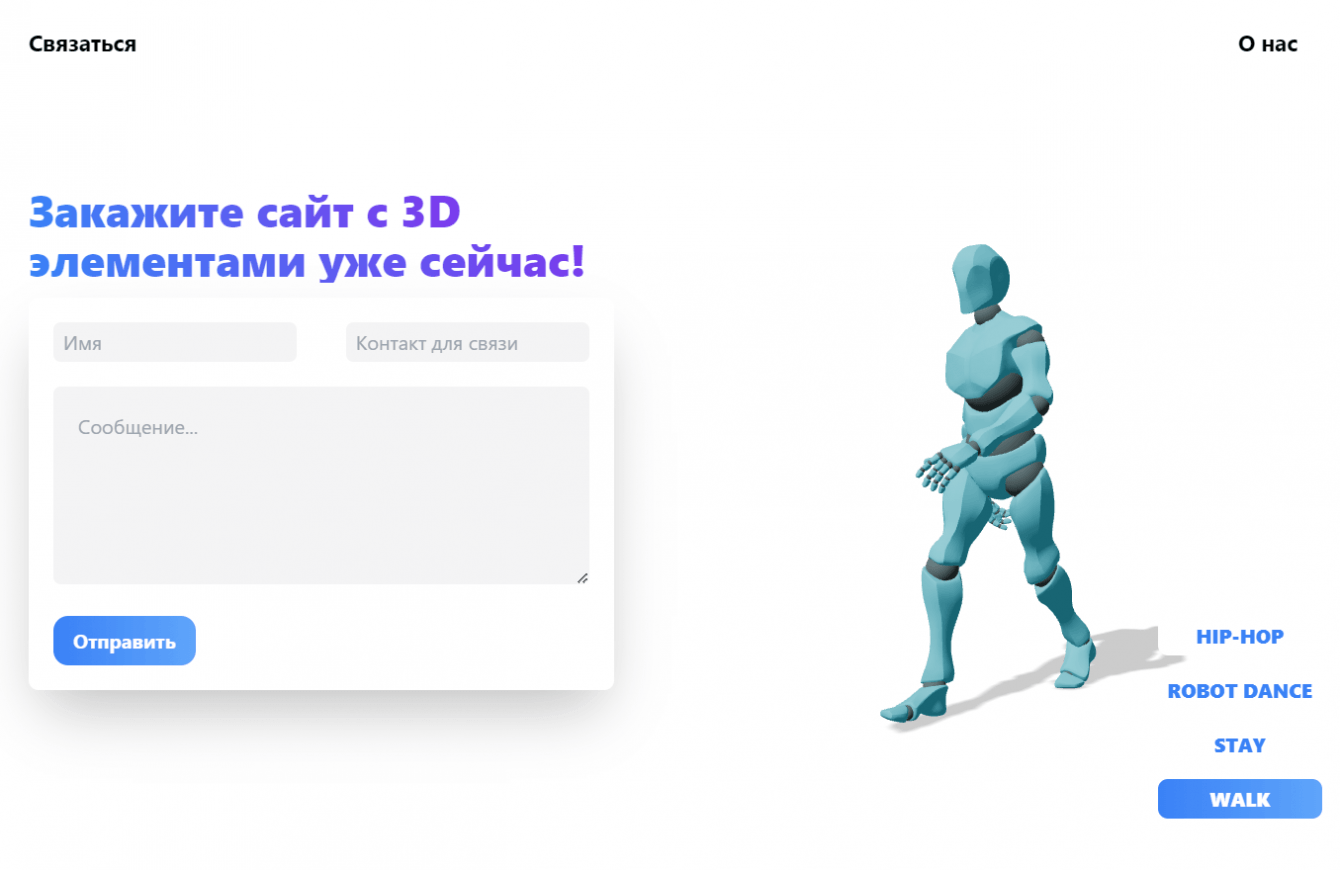 В результате получился готовый сайт, в котором используются 3д элементы с анимацией