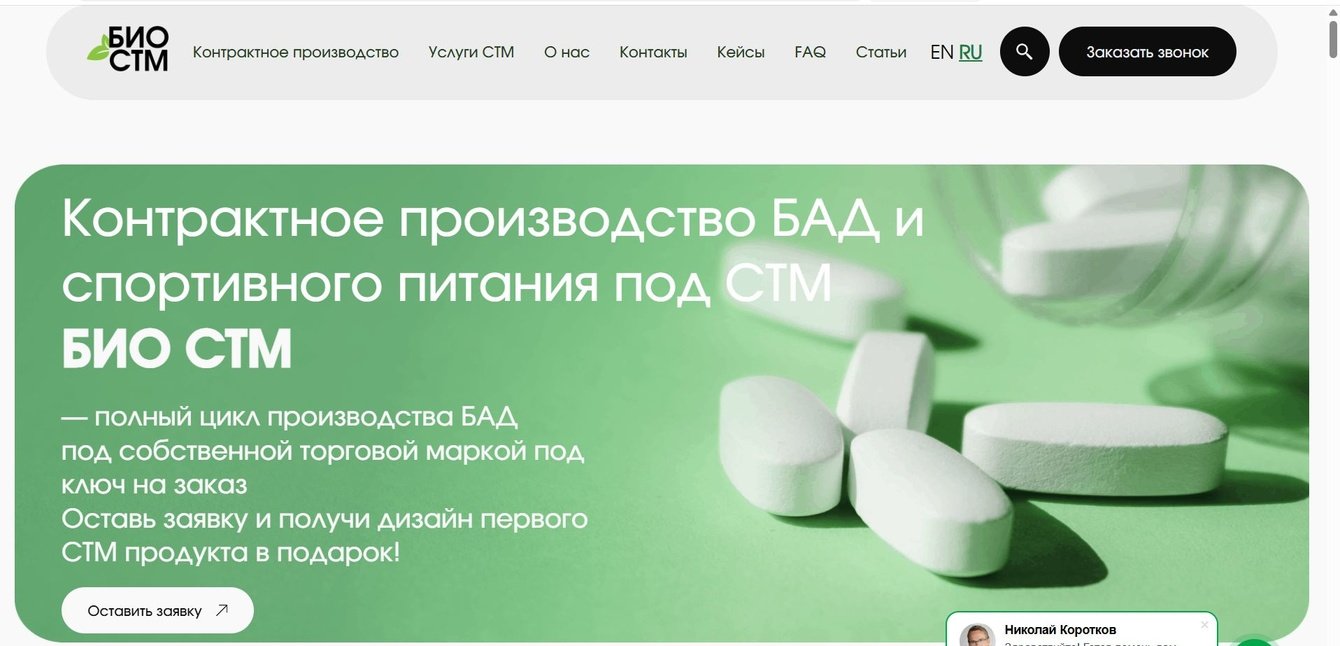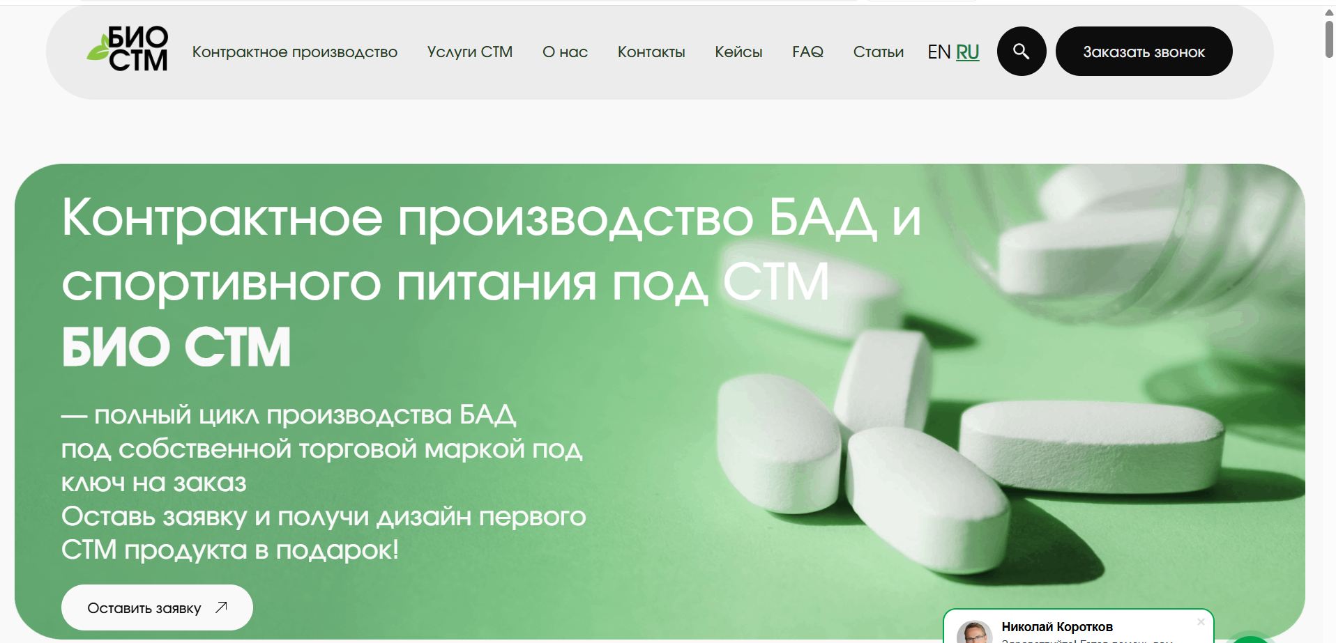 Клиенту был необходим сайт для продажи СТМ под БАДы. Задача заключалась в том чтобы создать оптимизированный сайт с нуля и сразу же выйти в топ по ключевым запросам