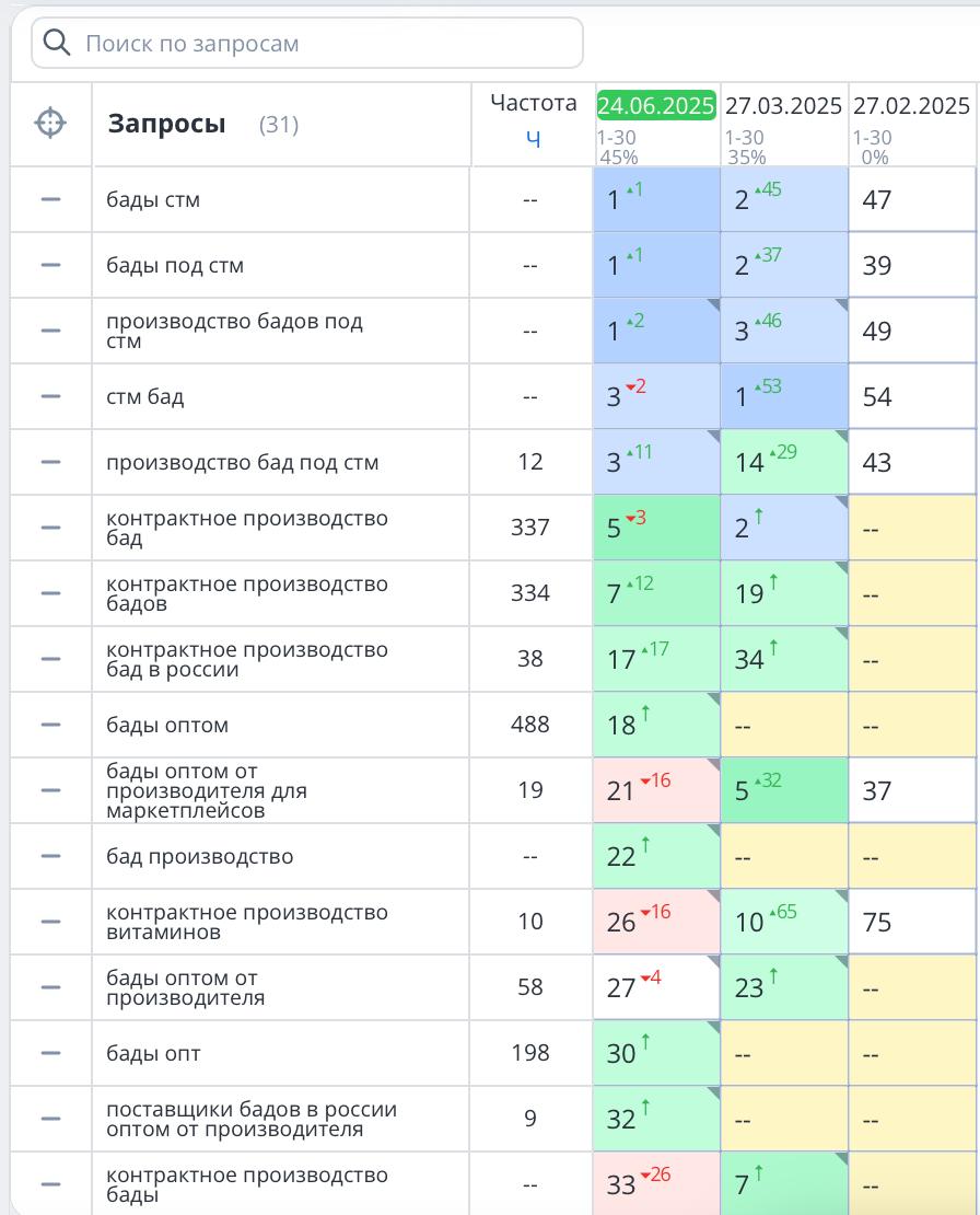 По самому важному запросу "Бады СТМ" клиент находится в топ 10 и по сей день, исходя из открытых источников.