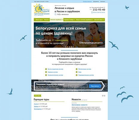 Цель заказчика привлечь клиентов, а так же максимально упростить поиск варианта отдыха. Для этого мы проанализировали и разработали специальную систему выбора туров: по направлениям, по городам, по заболеваниям.