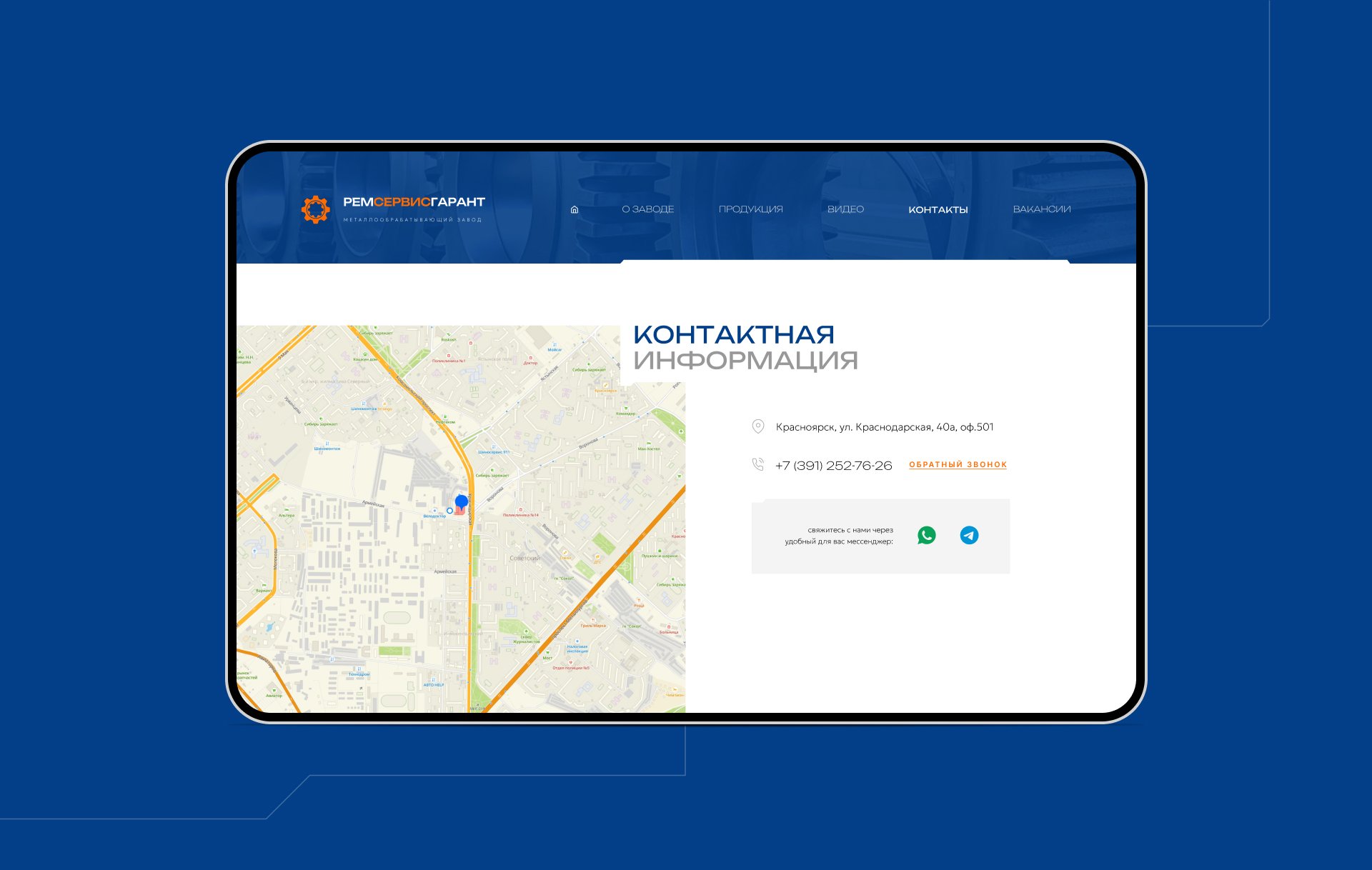 1. Лаконичный и информативный сайт. Новый сайт стал удобным инструментом для презентации завода «РемСервисГарант» и его возможностей.