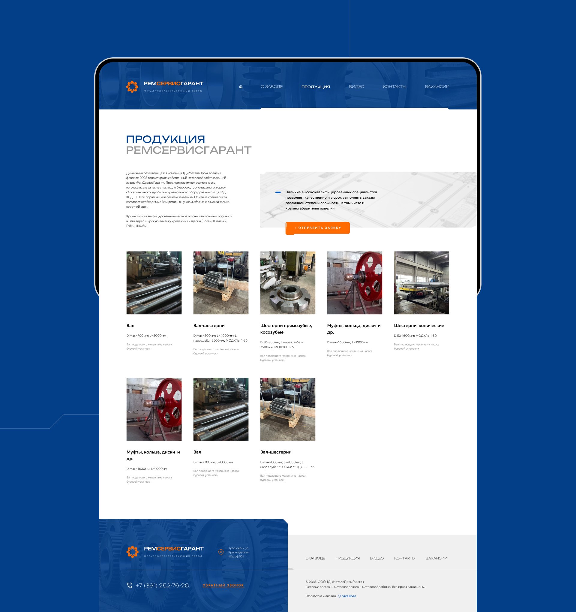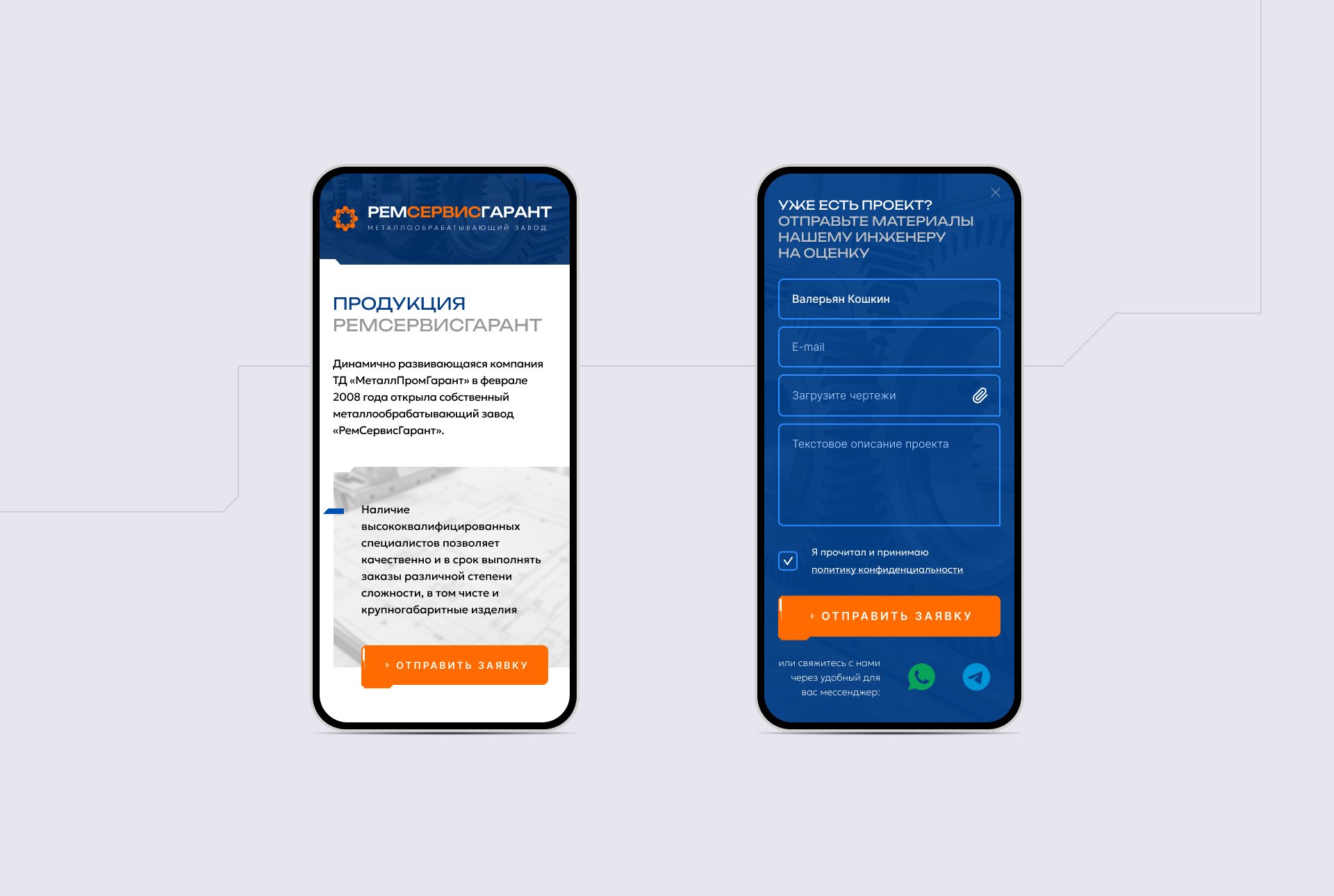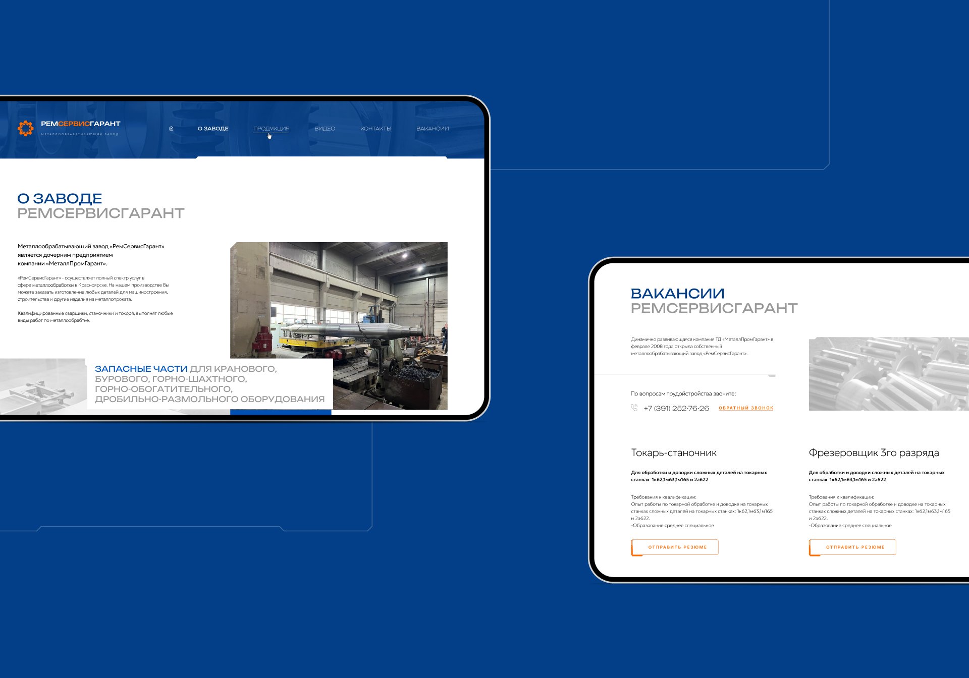 О проекте: компания «МеталлПромГарант» давно развивает направление металлообработки, которое со временем выросло в отдельное юридическое лицо и полноценный завод — «РемСервисГарант». Однако до недавнего времени информация о заводе была представлена лишь в разделе на основном сайте компании. Это ограничивало возможности для продвижения и взаимодействия с клиентами.