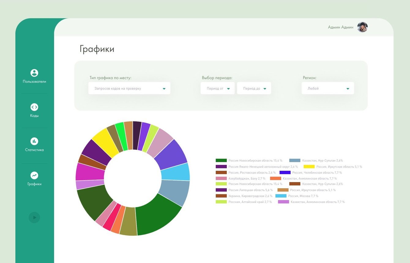 Модули «Статистика» и «Графики» для администраторов системы по функционалу не отличаются от представленных в блоке описания группы «Специалист».