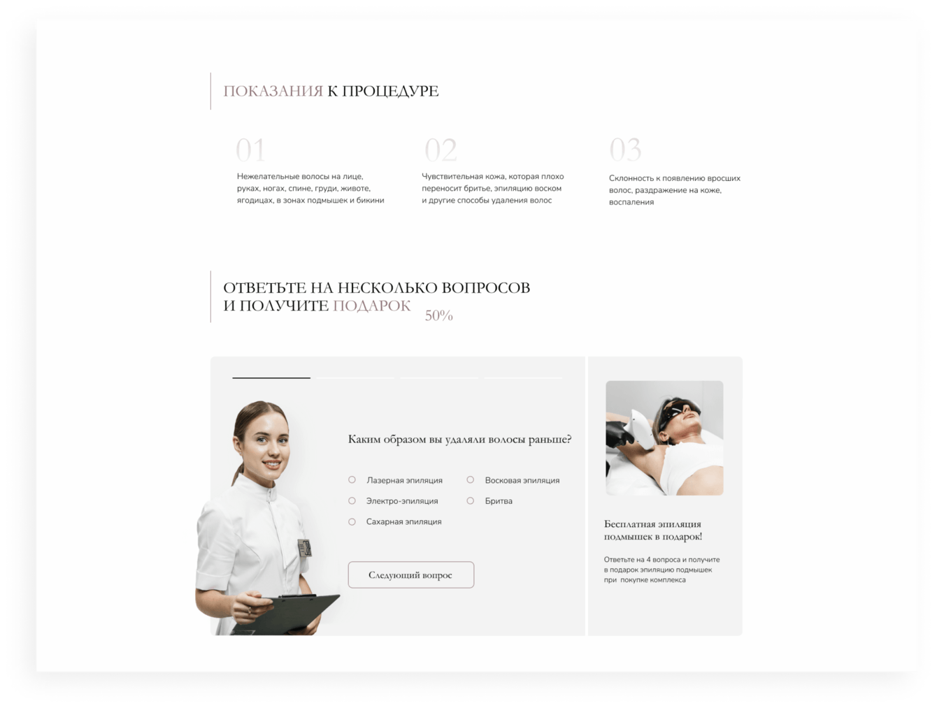 Разработка страницы лазерной эпиляции для студии косметологии.