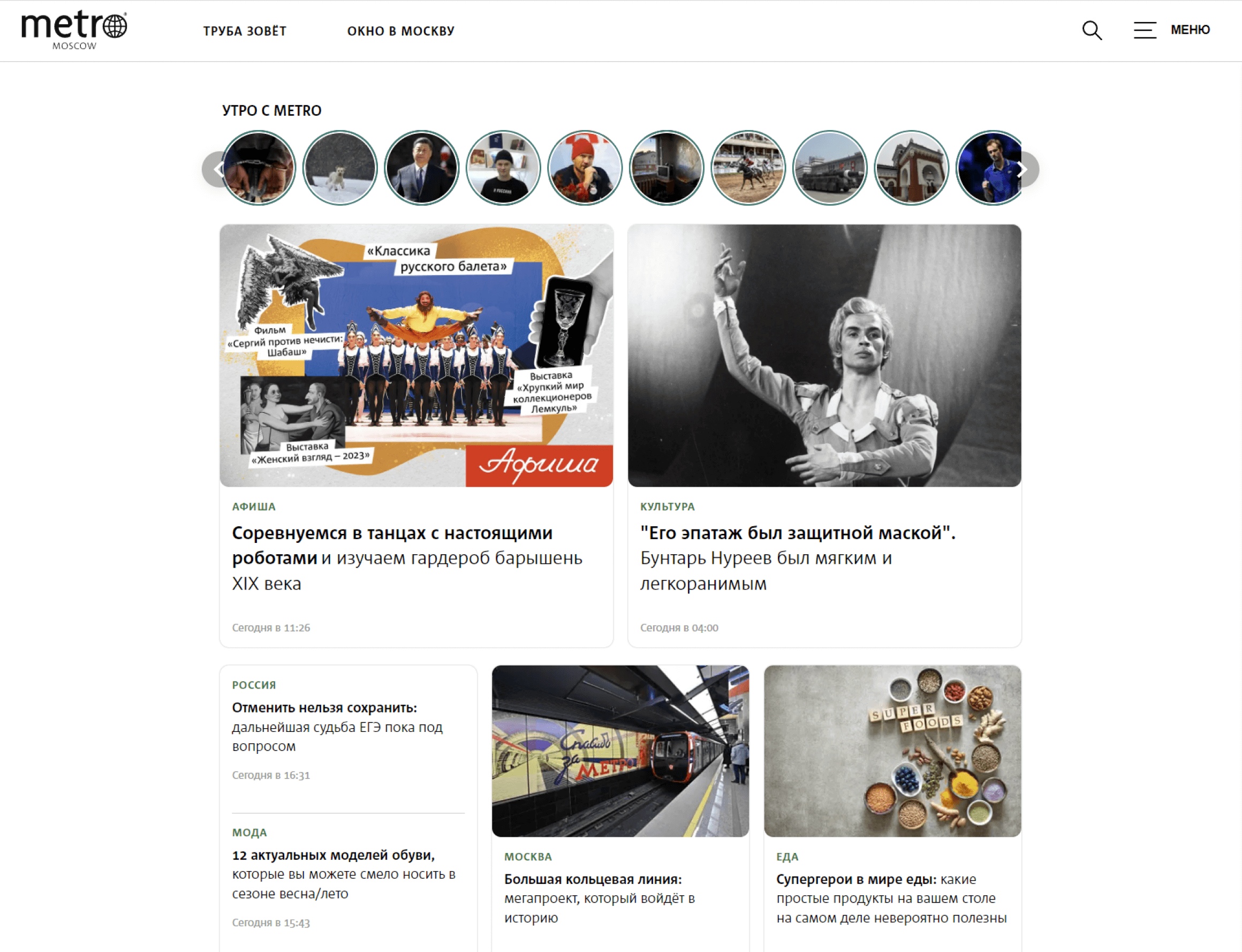 Metro – крупнейший международный бренд, который 26+ лет ведёт свою историю на медиарынке. Новости, интервью, эксклюзивы, афиша, обзор самых важных московских, российских и мировых событий в онлайн и печатном формате.