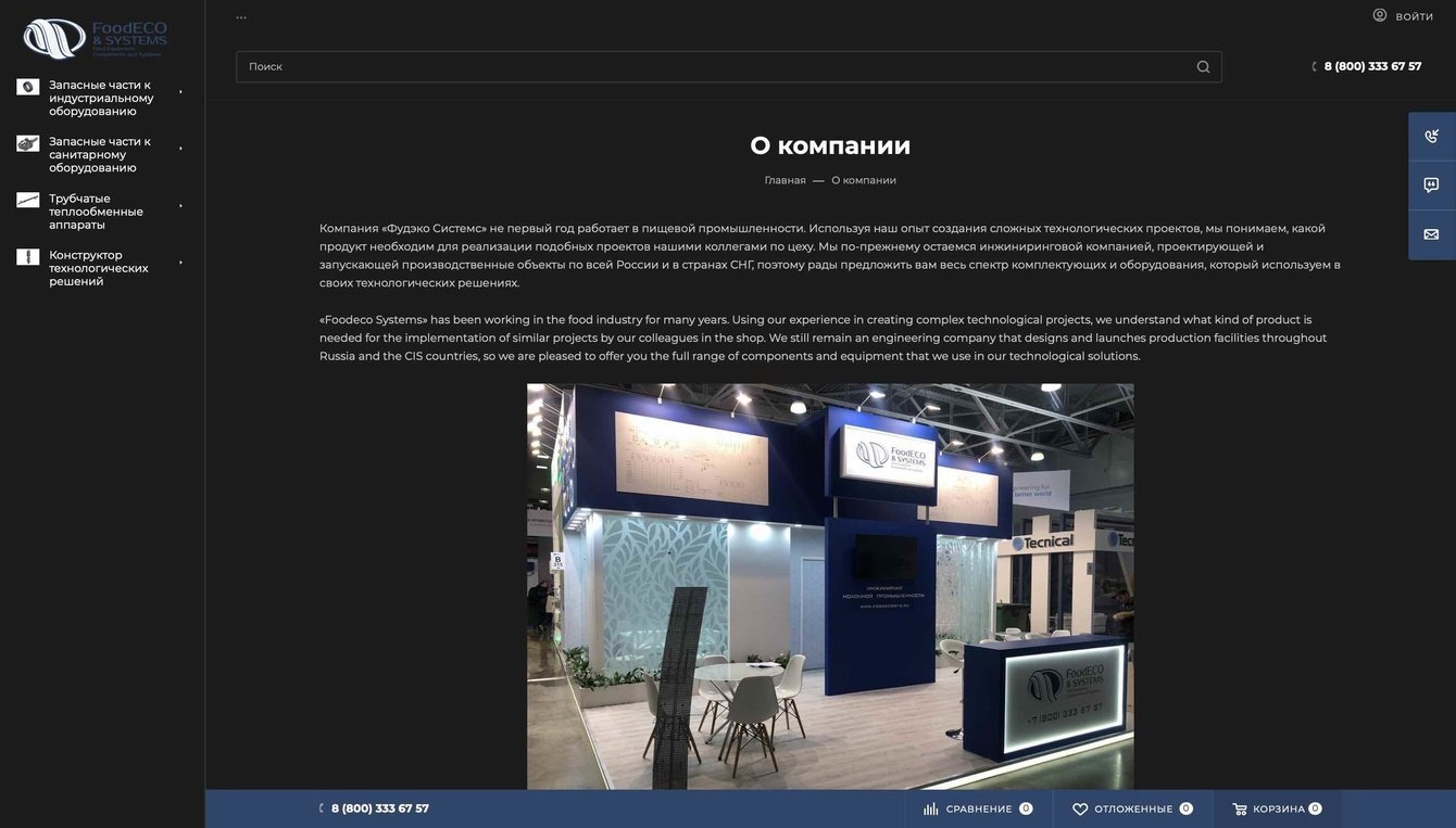 FoodECO нужен был сайт, который бы упрощал процесс взаимодействия с их клиентами, предоставляя подробные и актуальные данные о их продуктах и услугах. Это было особенно важно для них, поскольку они предлагают сложные технические решения, требующие детального и точного описания.