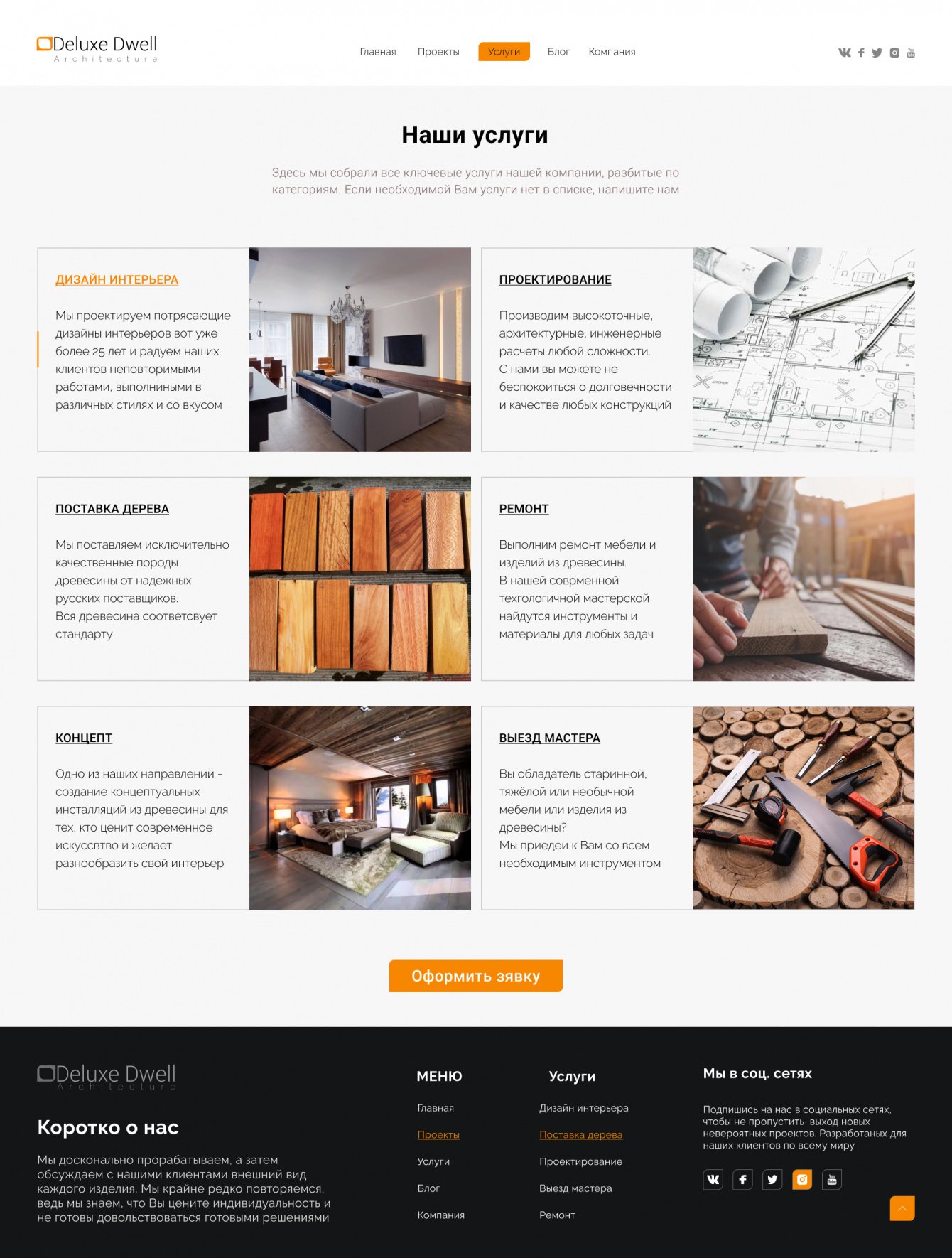 Сделать отдельную страницу "Услуг"