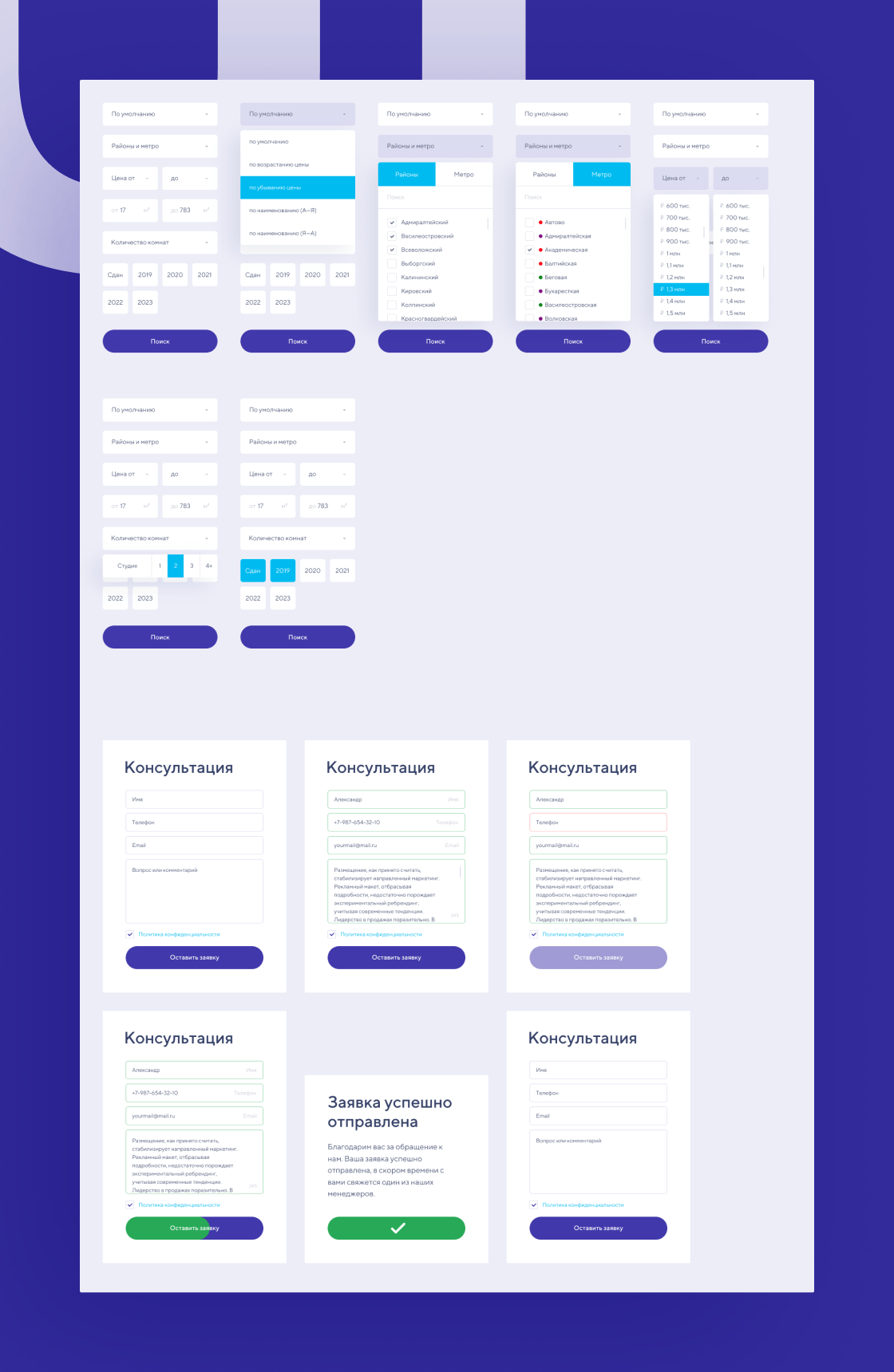 Мы собрали все требования заказчика и задокументировали их в техническом задании. Затем проанализировали сайты конкурентов — других агентств недвижимости в Санкт-Петербурге, — чтобы при создании нашего сайта выгодно выделиться на их фоне, учтя их ошибки.
