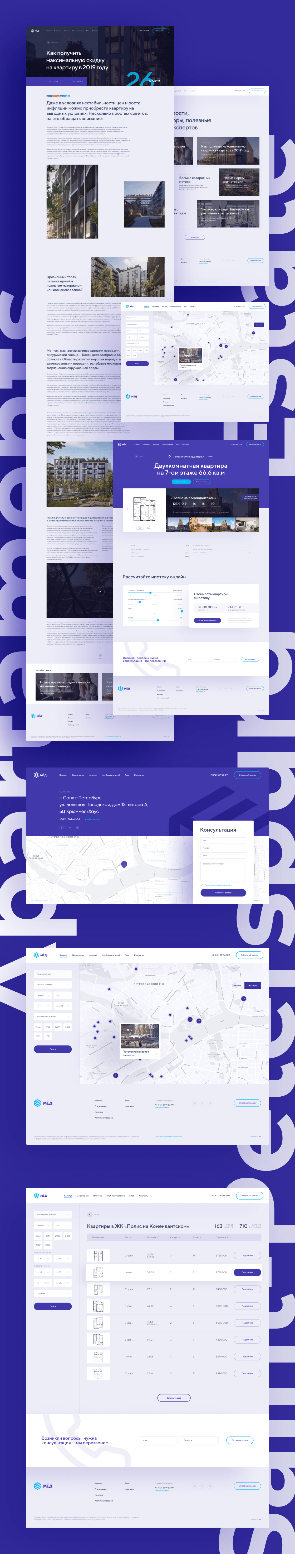 Что нам предстояло сделать? Первое — разработать новую структуру сайта. Вместо лендинга решили делать многостраничник, так как у агентства большой каталог недвижимости, и разместить его полностью на одностраничнике невозможно. Нужно было выстроить такую архитектуру сайта, чтобы пользователь без труда мог найти подходящий по его параметрам ЖК, а затем посмотреть в нем конкретные квартиры.