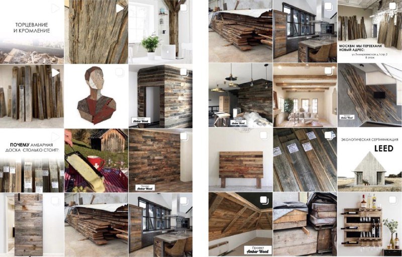 Необходимо было составить визуал для компании, занимающейся изготовлением предметов интерьера и отделки из амбарной доски.