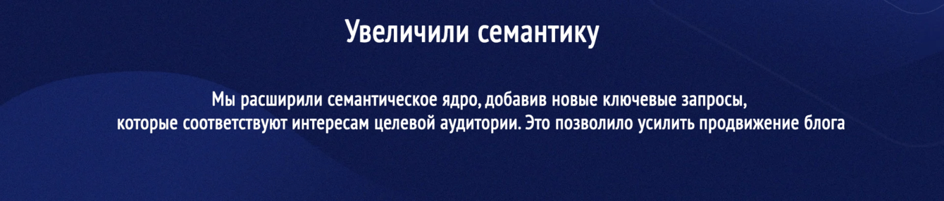 Расширение семантики способствовало созданию более разнообразного контента, что позволило привлечь дополнительные потоки трафика и удовлетворить потребности пользователей в разных аспектах темы.