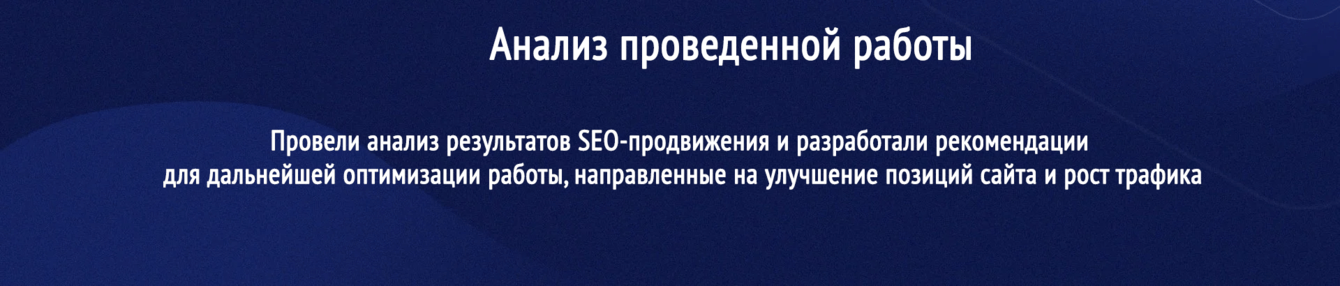 Мы провели анализ результатов работы, оценив эффективность стратегии с точки зрения трафика, позиций в поисковых системах и вовлеченности пользователей. Анализ стал основой для дальнейших шагов, направленных на улучшение результатов: оптимизацию контента, улучшение технических параметров сайта и увеличение органического трафика.