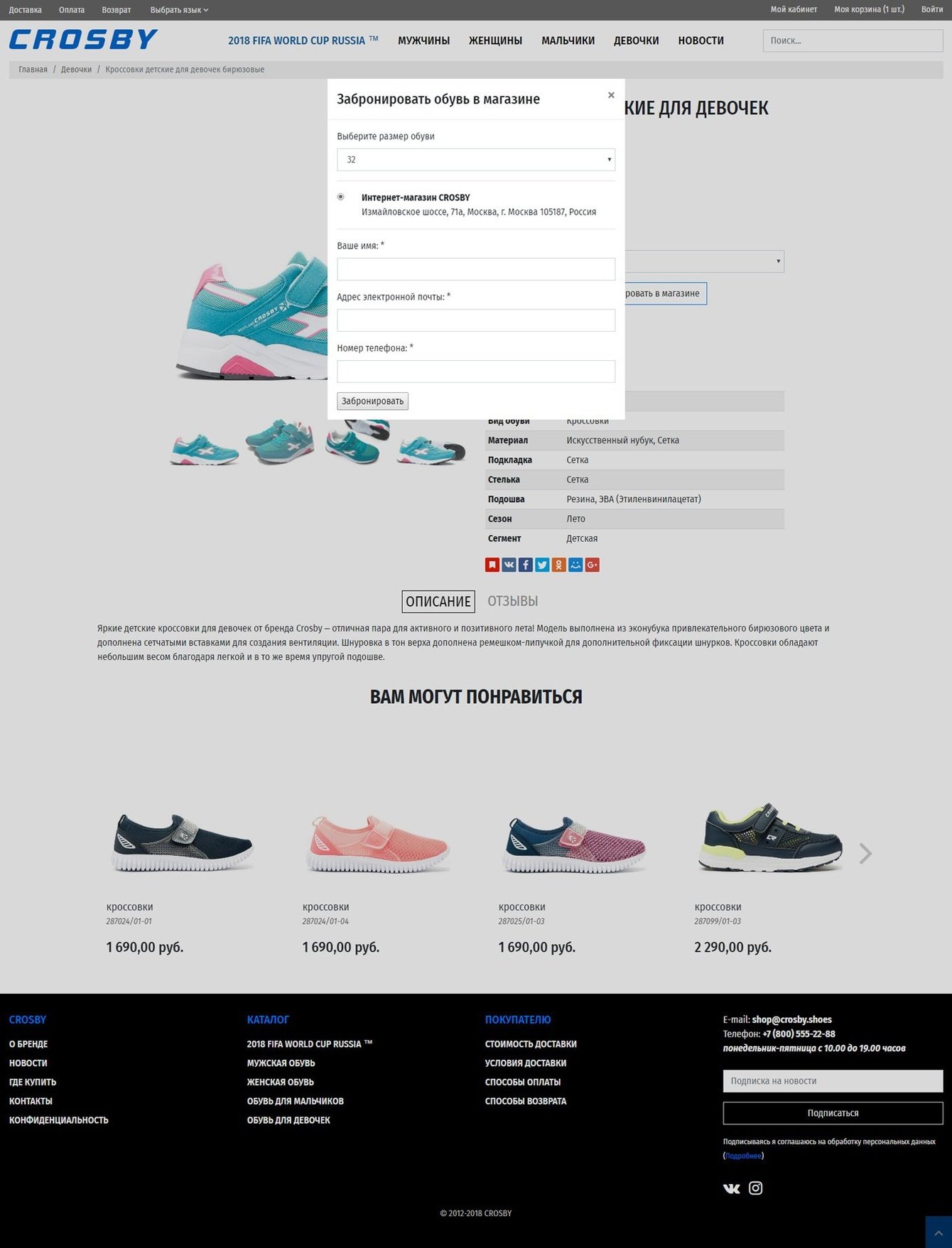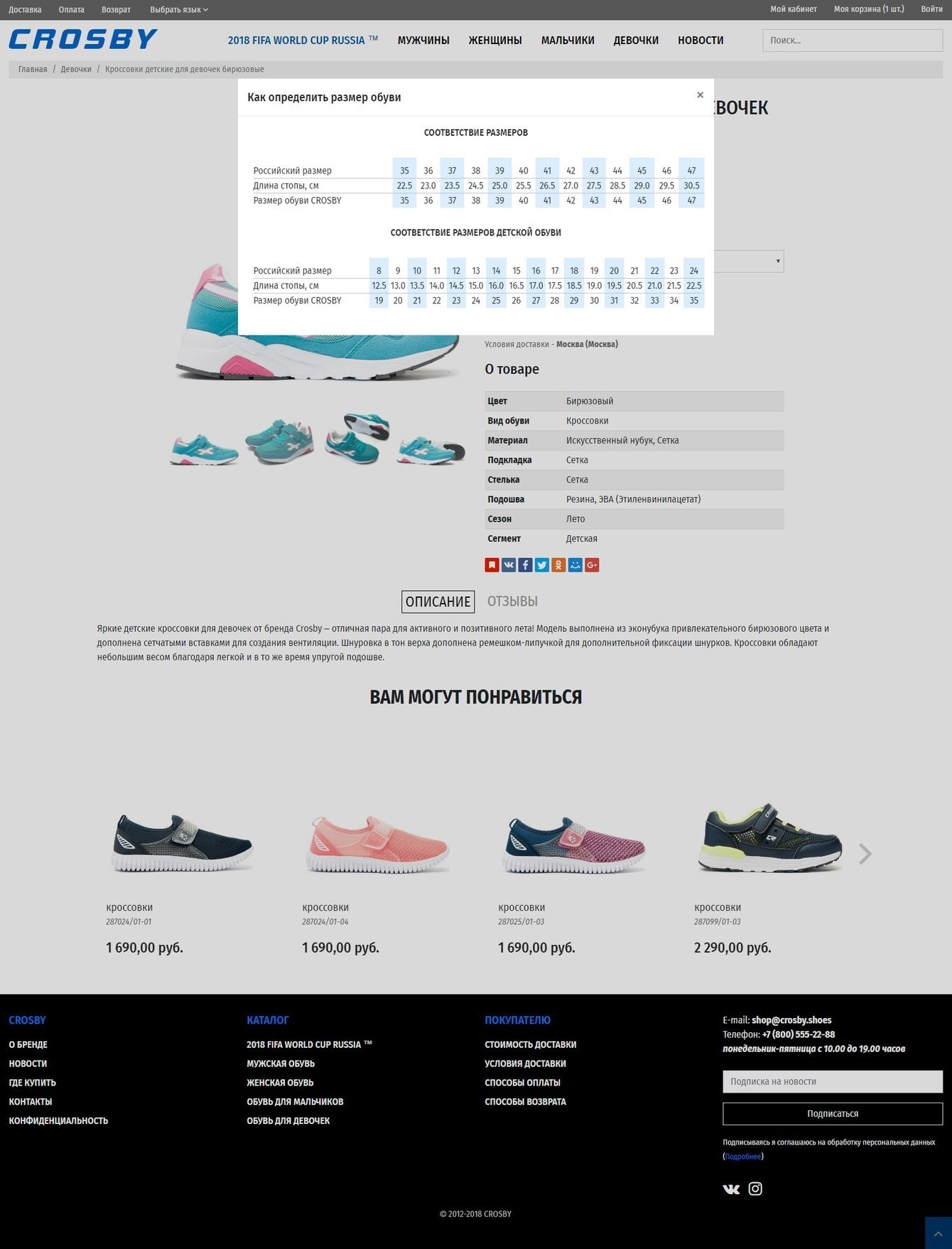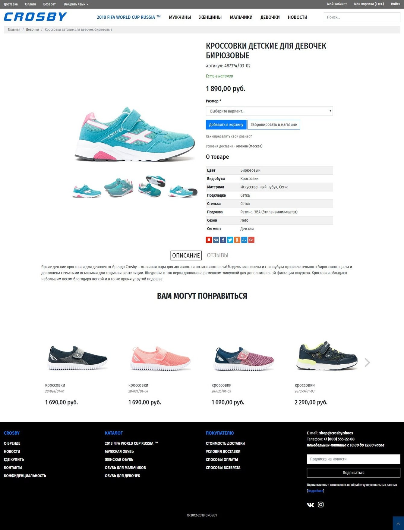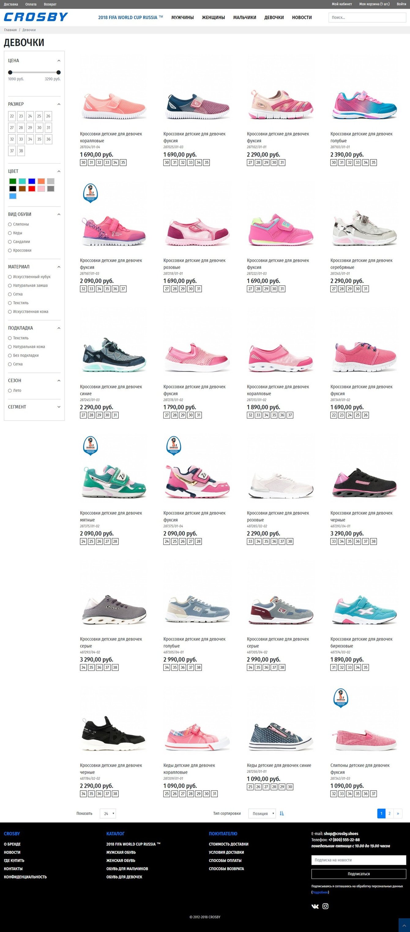 Простой, но в тоже время интуитивно понятный внешний вид категорий сайта, который позволяет хорошо представить продаваемые товары, сразу можно увидеть размер обуви и ее стоимость. Через фильтр товаров можно быстро подобрать интересующие модели. Дизайн сайта сделан кроссплатформенным, все функции полной версии сайта, доступны на любом устройстве.