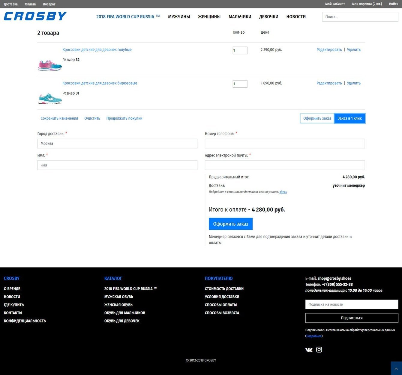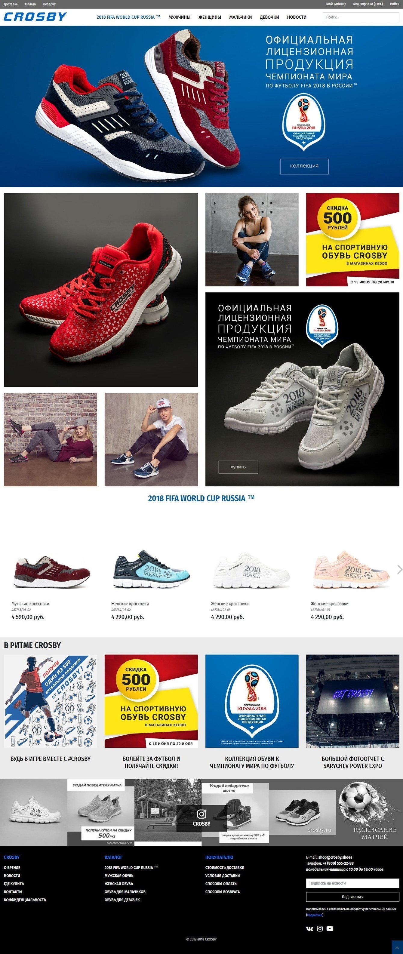 Crosby – это спортивный бренд, в ассортименте которого представлены, линейки спортивной обуви и моделей для активного образа жизни. В определенный момент некоторые бренды приходят к тому, что пора создать и собственный интернет-магазин, вот и бренд Crosby, решил что обычного сайта ему мало. Поэтому был разработан интернет-магазин, на системе управления Magento, позволяющей ему вырасти в очень крупный проект, имеющий свои представительства, как в других города, так и в других странах. Для этих же целей был установлен, настроен и адаптирован модуль мультисклада, так учет остатков в магазине ведется от разных складов (магазинов), но может осуществлять доставку по одному тарифу с разных складов.