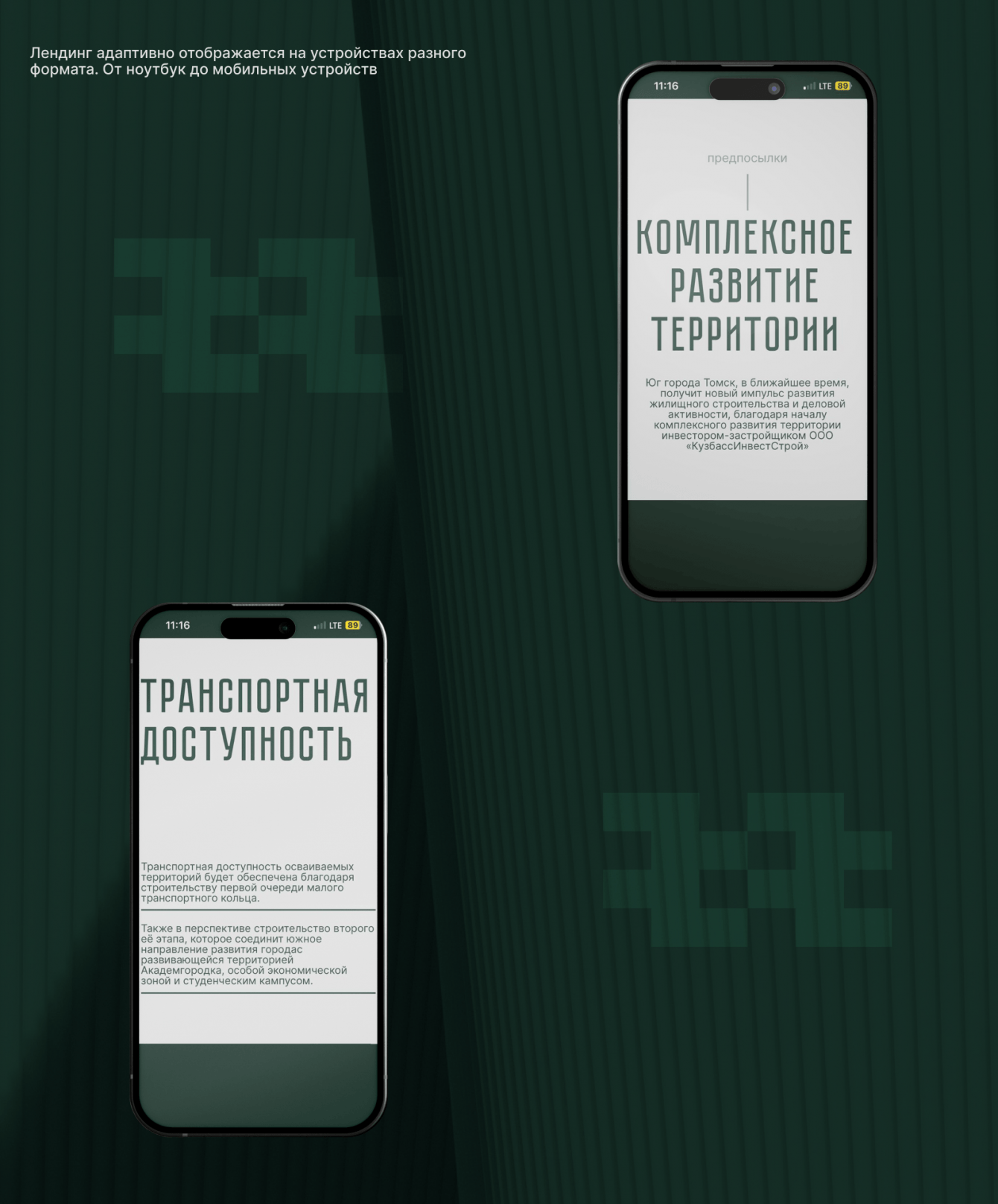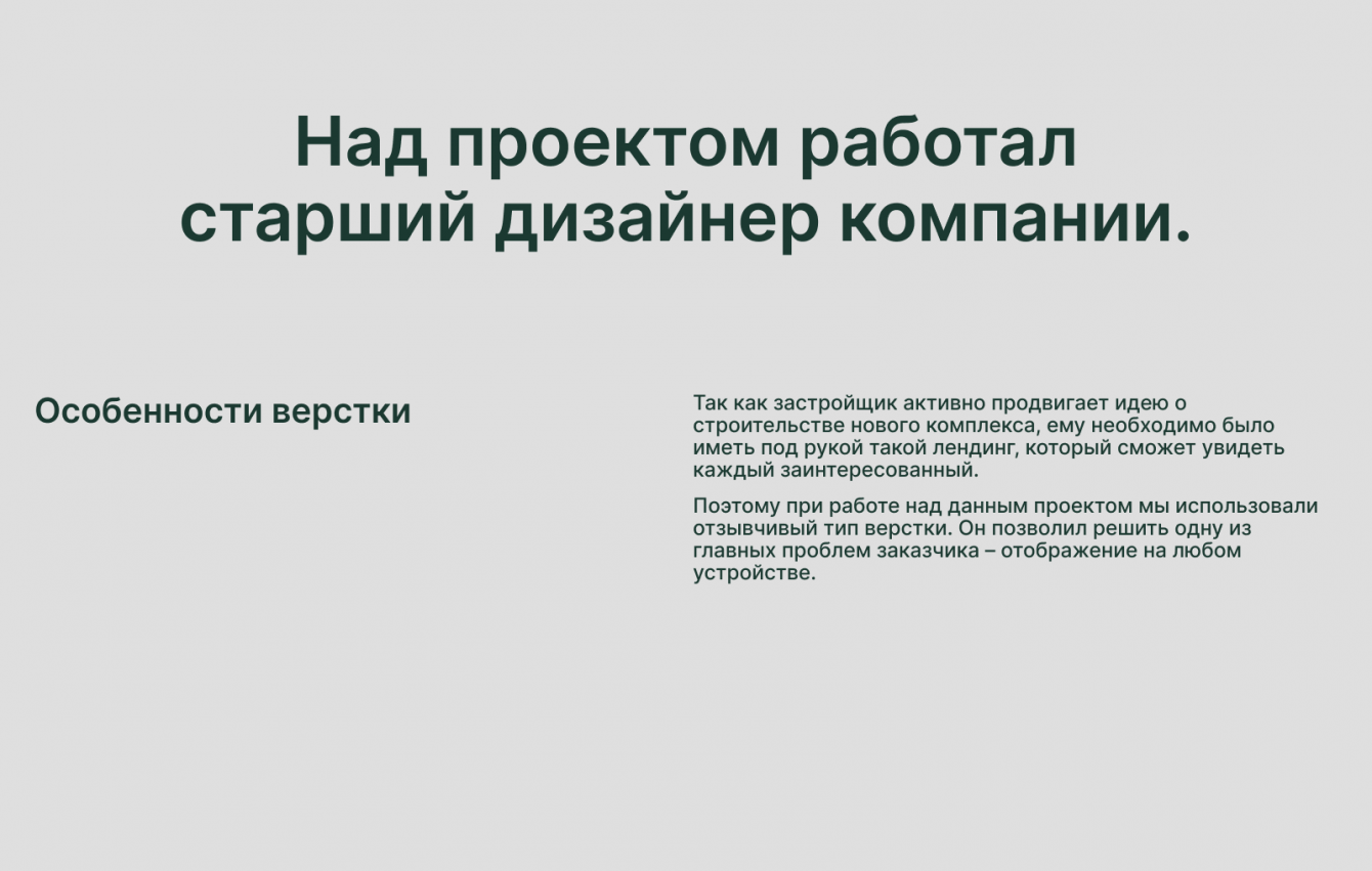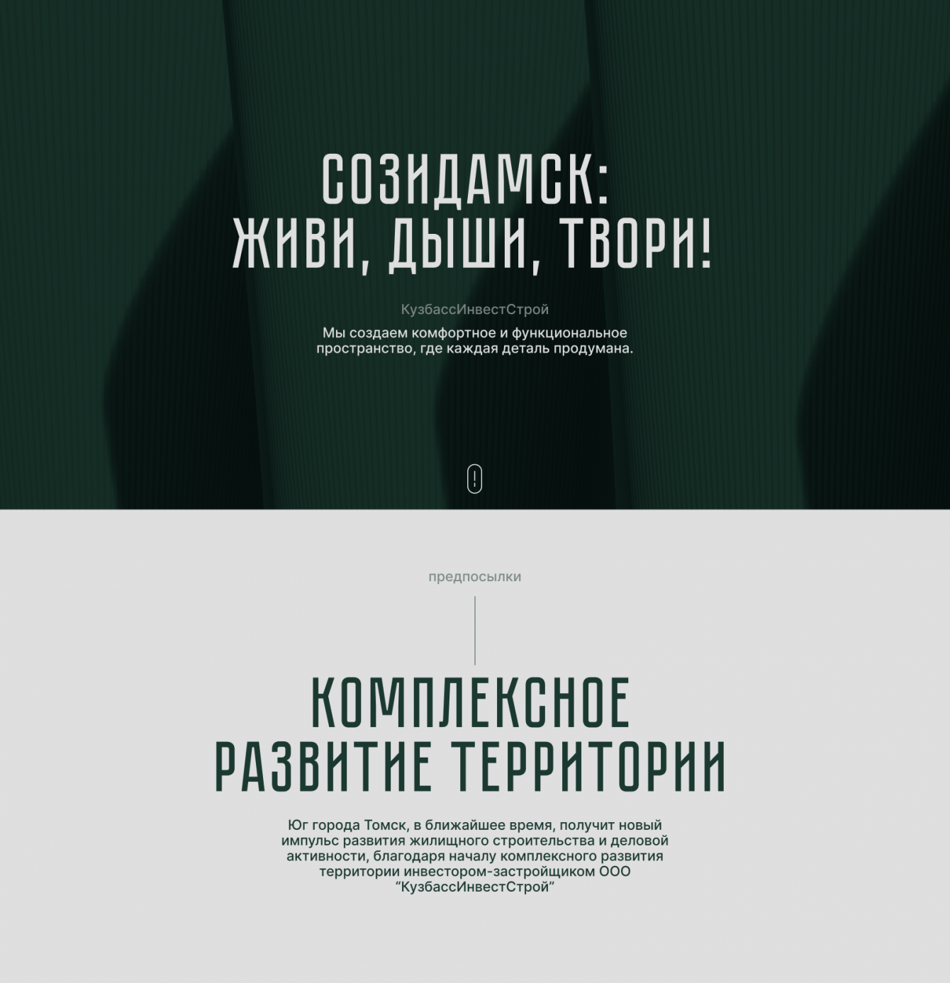 Необходимо было в сжатые сроки реализовать лендинг для компании-застройщика, планирующего развить один из районов города Томск.