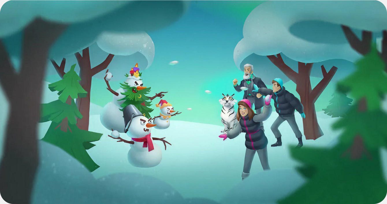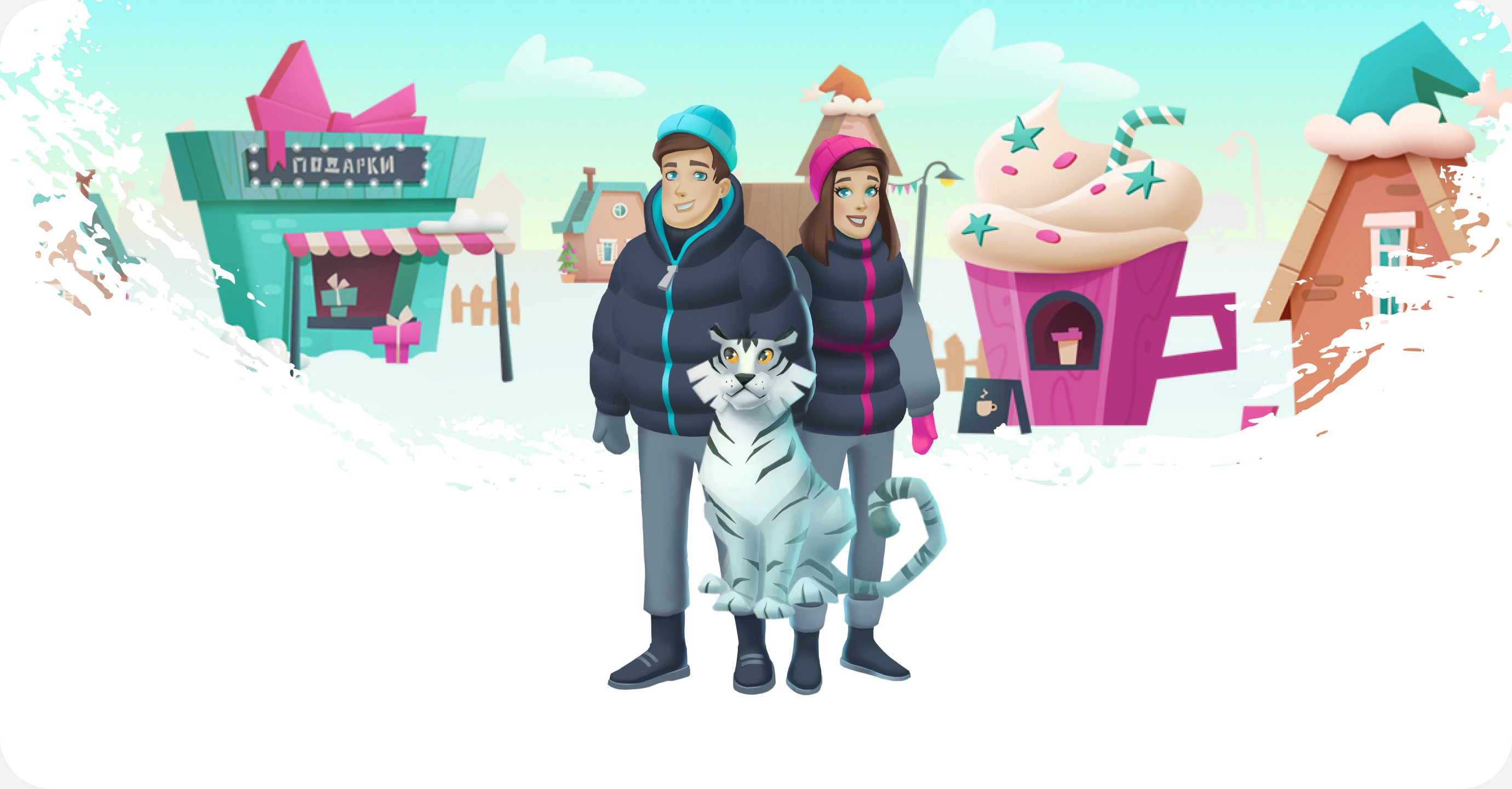 Персонажи – харизматичный Санта, узнаваемый персонаж бренда Теле2, жители города и банда снеговиков. Все они получили выразительные детали и анимацию, показывающие характер.