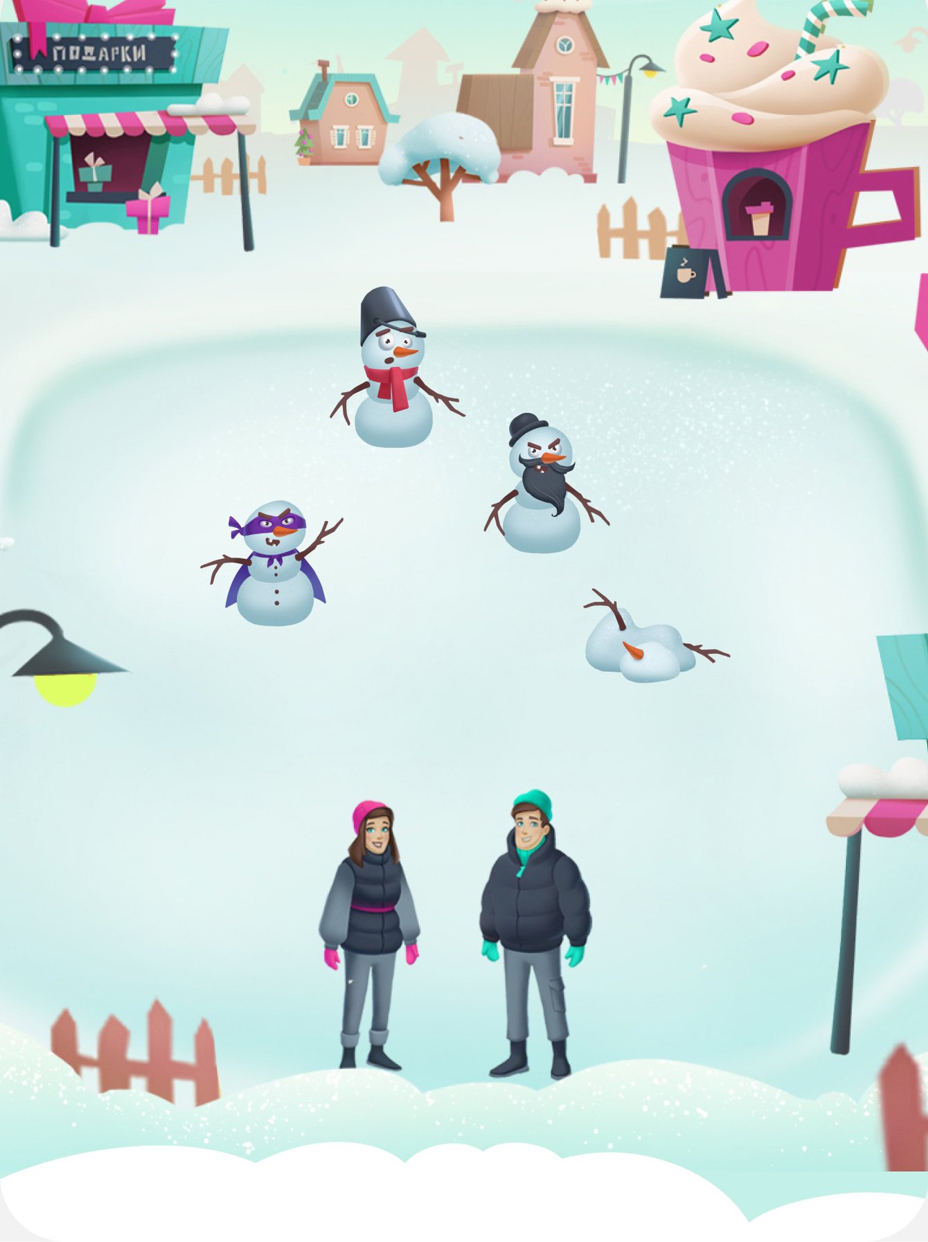 Необходимо управлять персонажем, рассчитывая дальность полета снежка. При этом важно следить за количеством жизней и стратегически проходить уровни, используя бустеры, чтобы продвинуться дальше по сюжету.