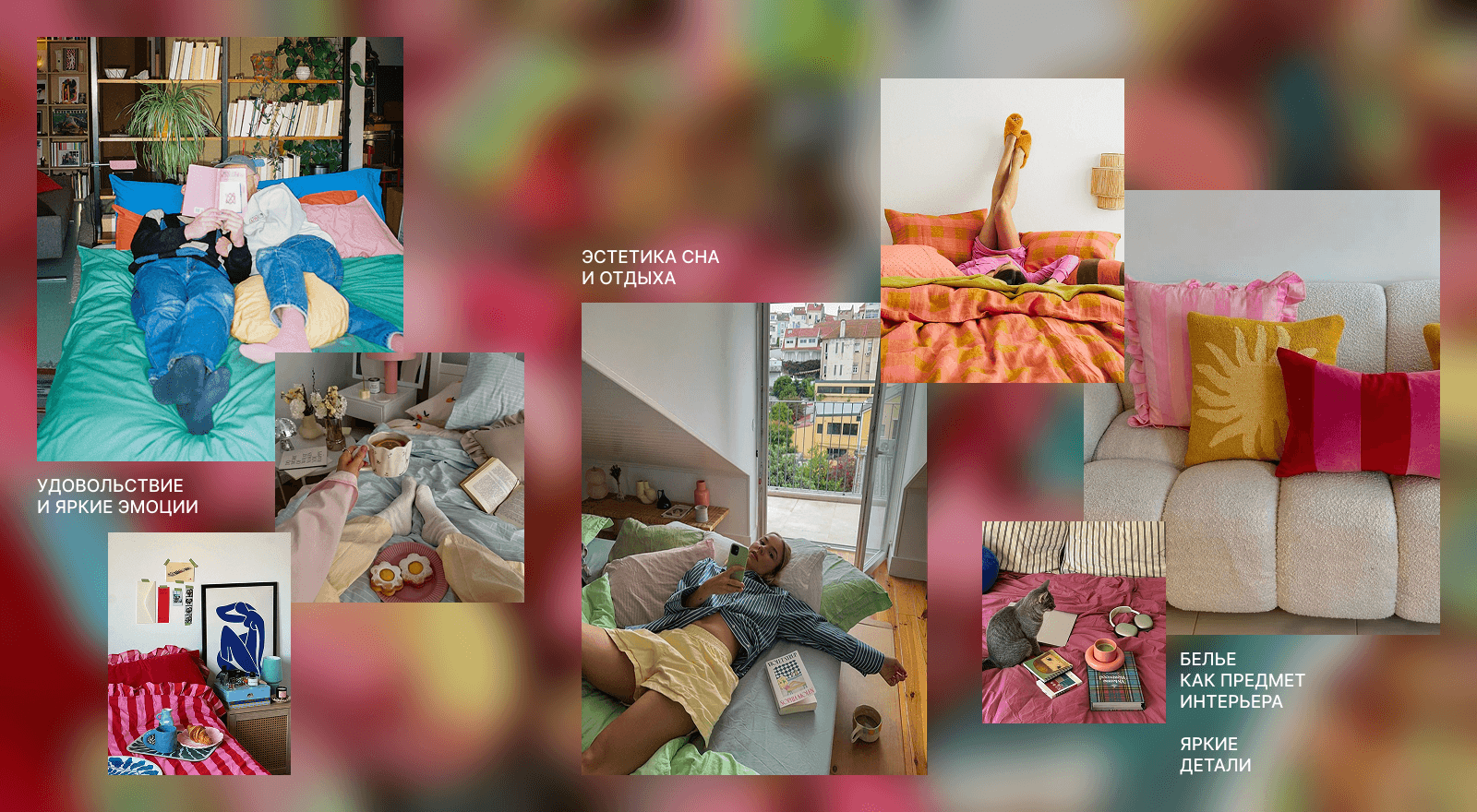 Самая простая, но яркая концепция, которая обещает, что наши-то товары для сна дадут тебе настоящее удовольствие. Яркое постельное — не роскошный максимум, а базовый минимум; то, что ты видишь каждый день и то, что должно поднимать тебе настроения.