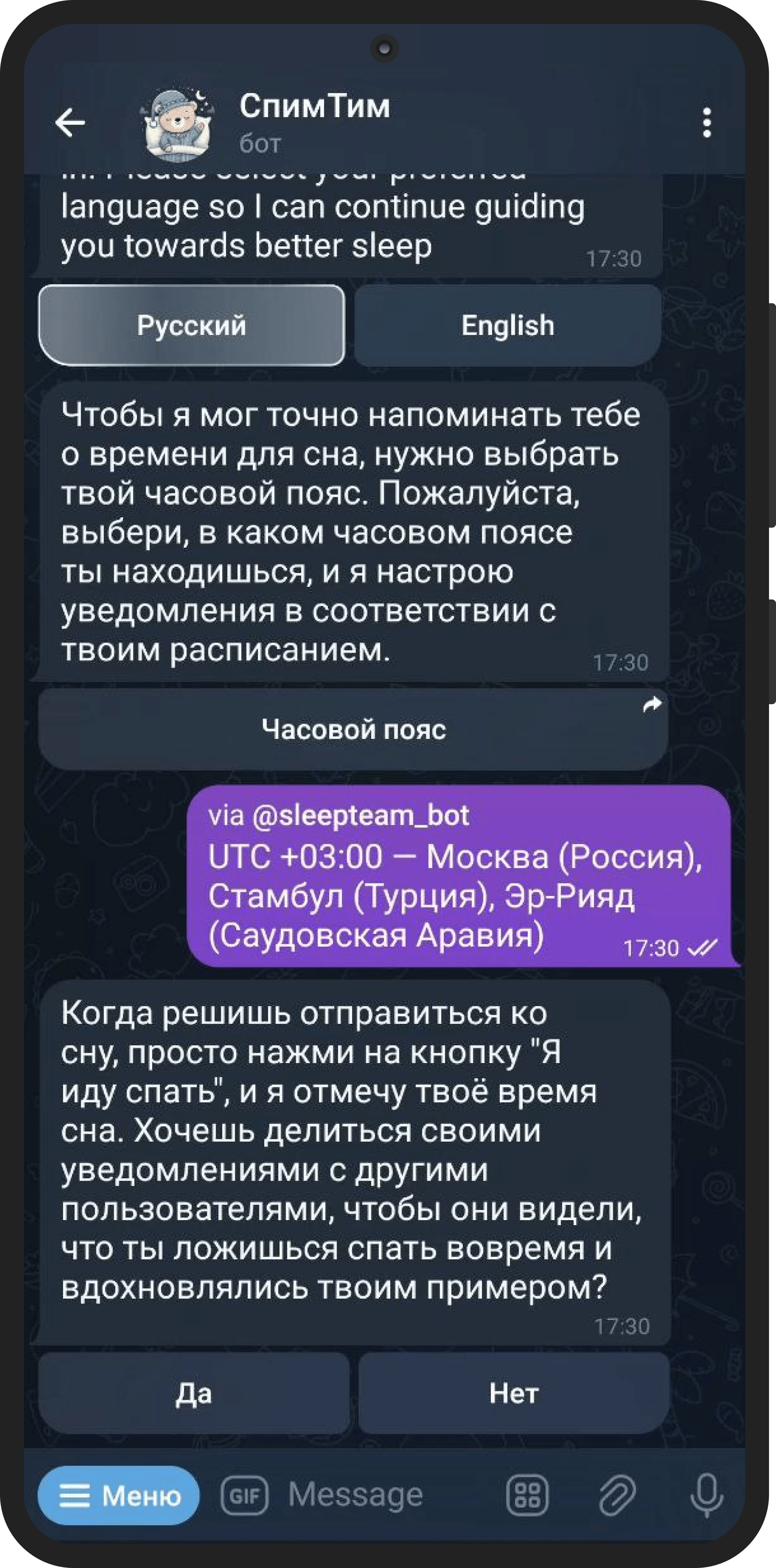Мы много внимания уделили тону коммуникации, сценарию без давления и работе с часовыми поясами. Приятно было наблюдать, как команда вложилась не только как разработчики, но и как люди. Вышло живо и по-настоящему тёпло