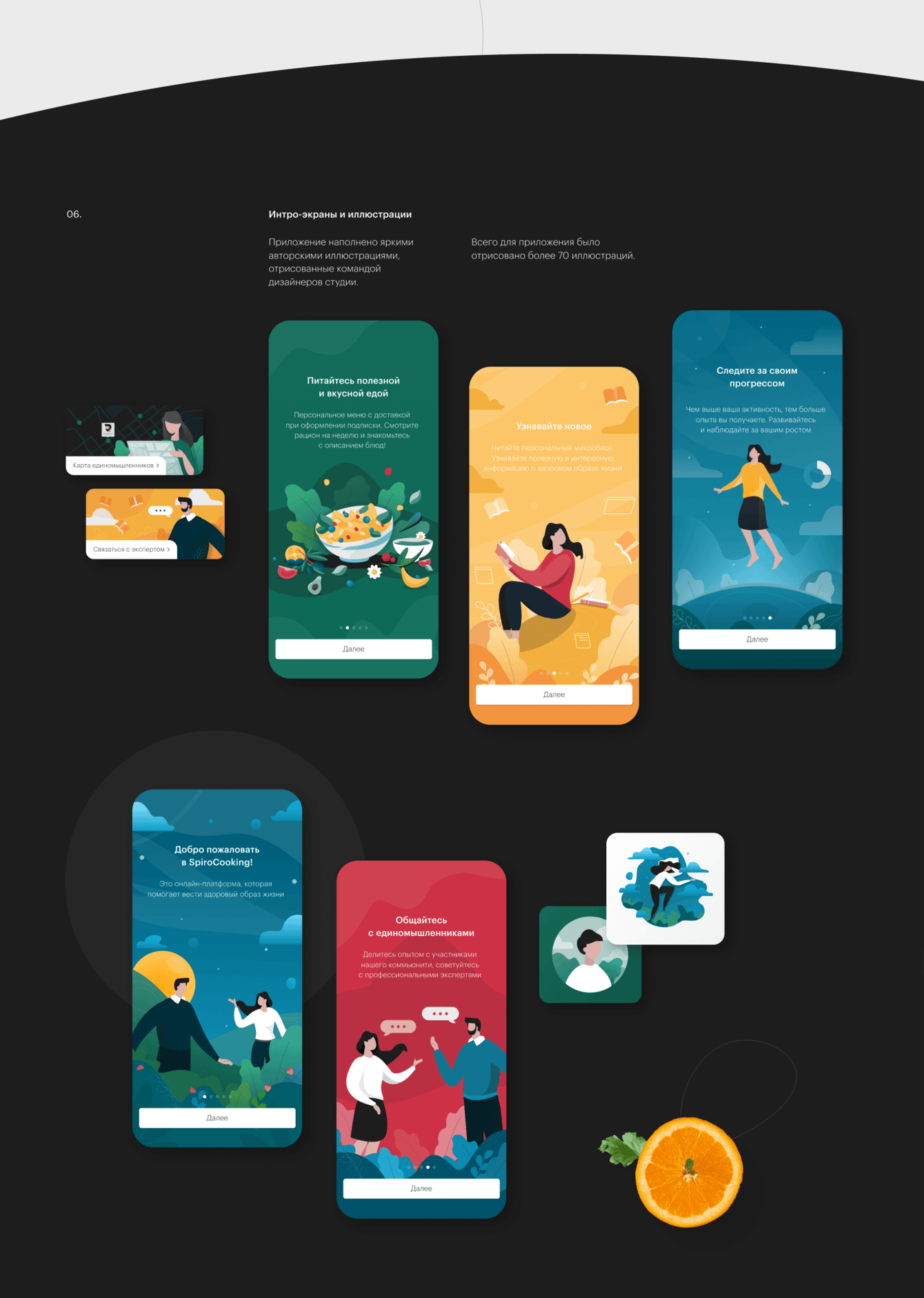 Мы разработали яркое самобытное приложение, совмещающее в себе нативный интерфейс и большое количество ярких иллюстраций.