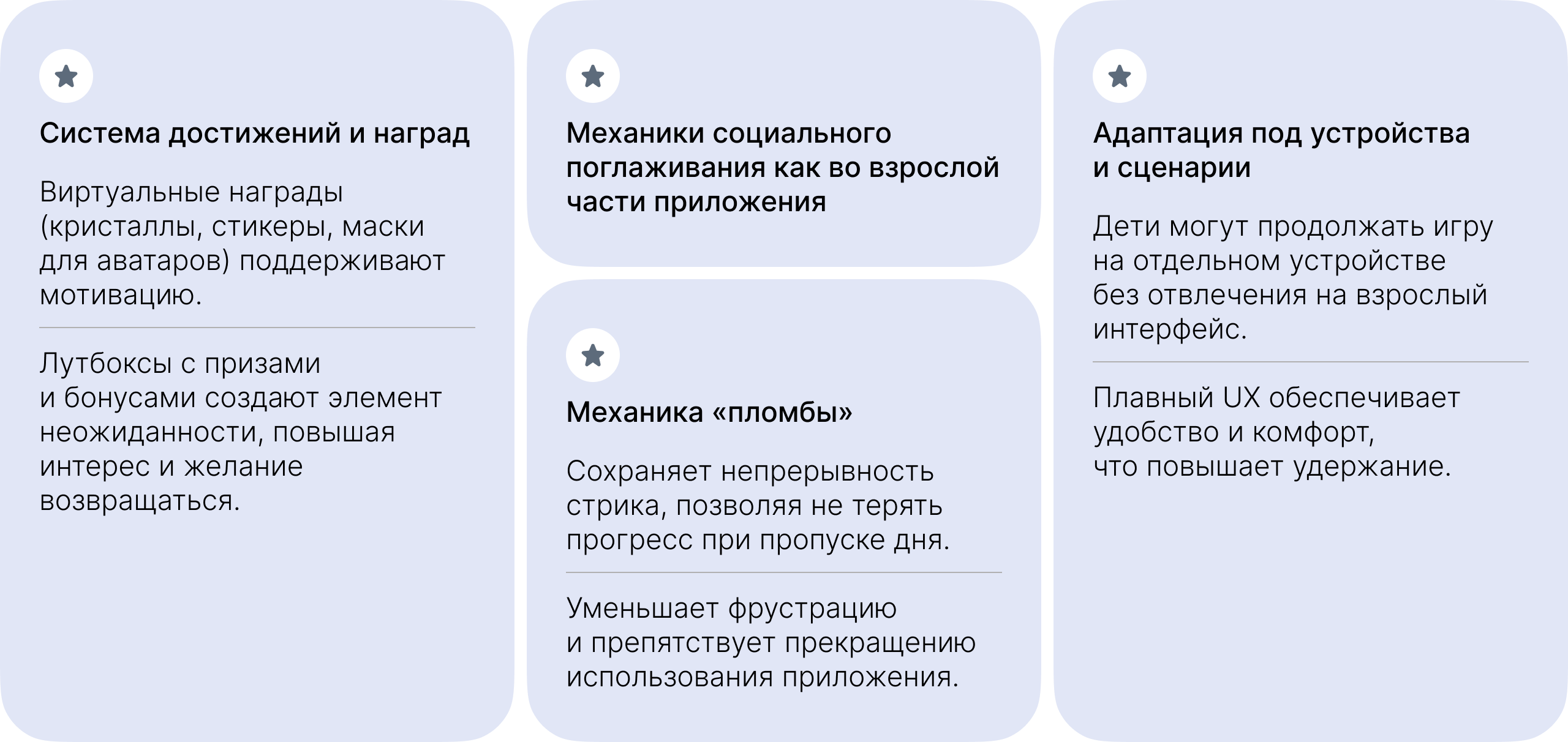 — Внедрили механики геймификации для вовлечения и формирования регулярных привычек для взрослых и детей