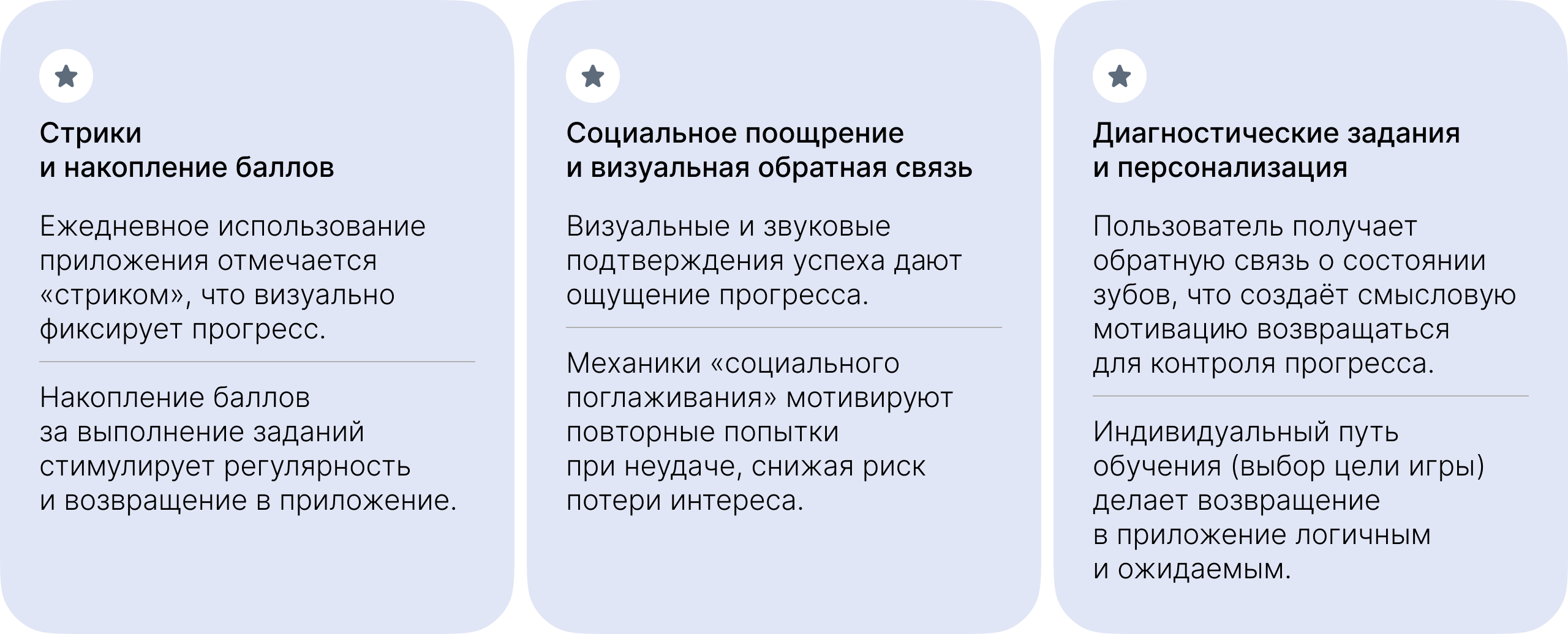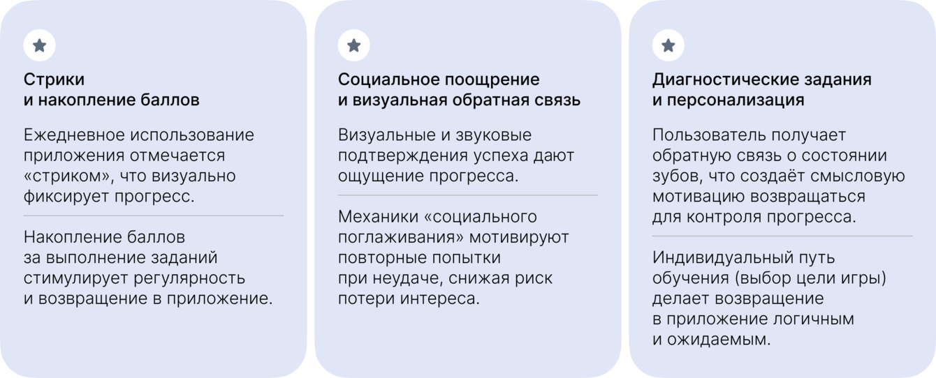 Игровая механика Splat построена на принципах поведенческой психологии и геймификации и является ключевым инструментом вовлечения пользователей и формирования привычки регулярного ухода за зубами.