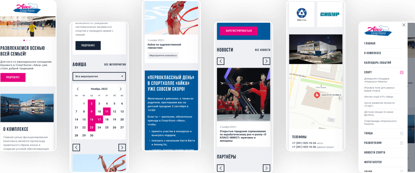 На главную страницу добавили динамичный слайдер с основной информацией комплекса, календарь и новости компании.