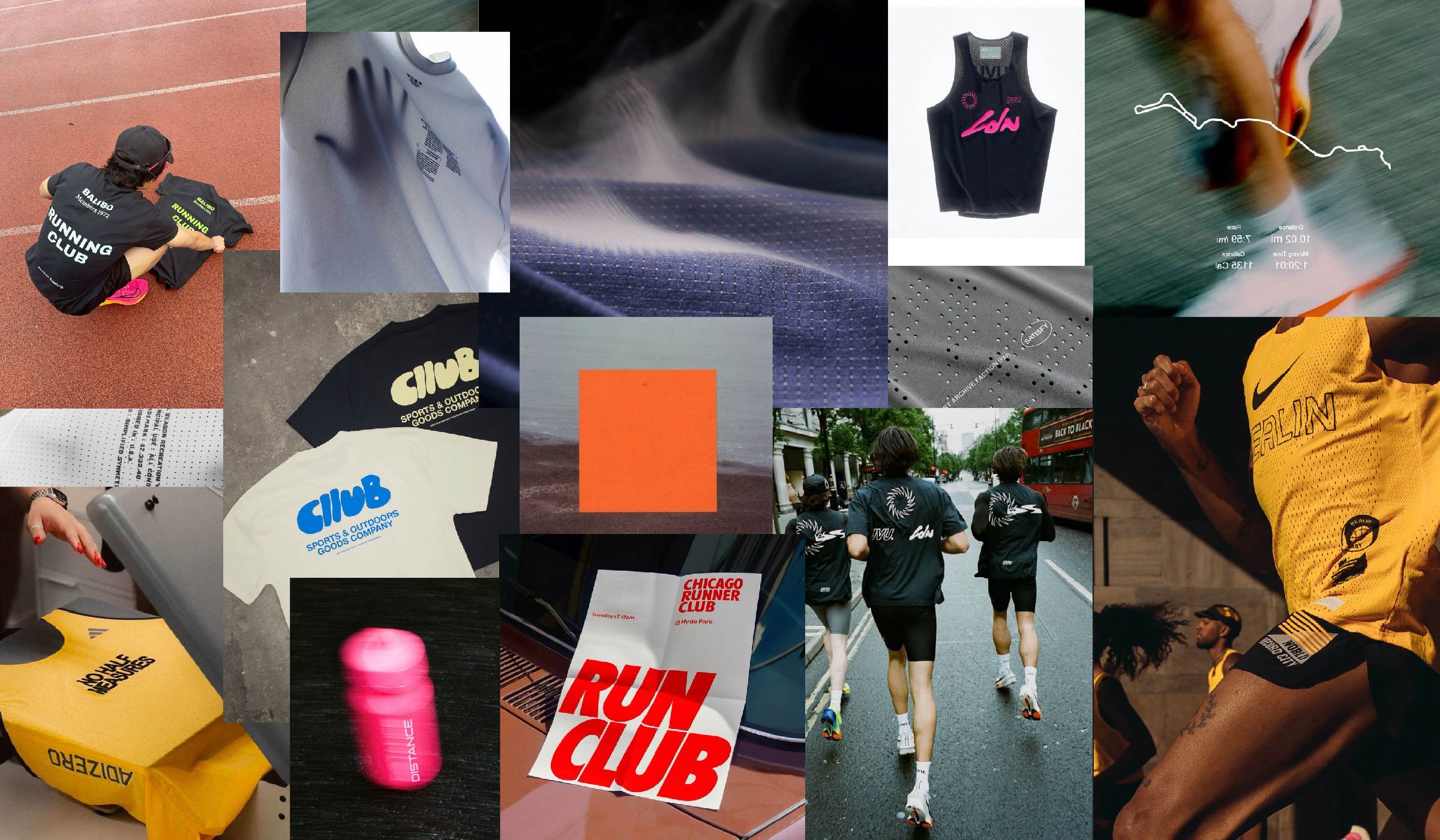 Мы вдохновились эстетикой беговых сообществ и клубов — минималистичная символика, аббревиатуры, крупные простые сообщения с минимальной стилизацией. Также мы собрали аккуратные логотипы, технологичные текстуры и тонкие силовые линии — элементы современного спортивного стиля.