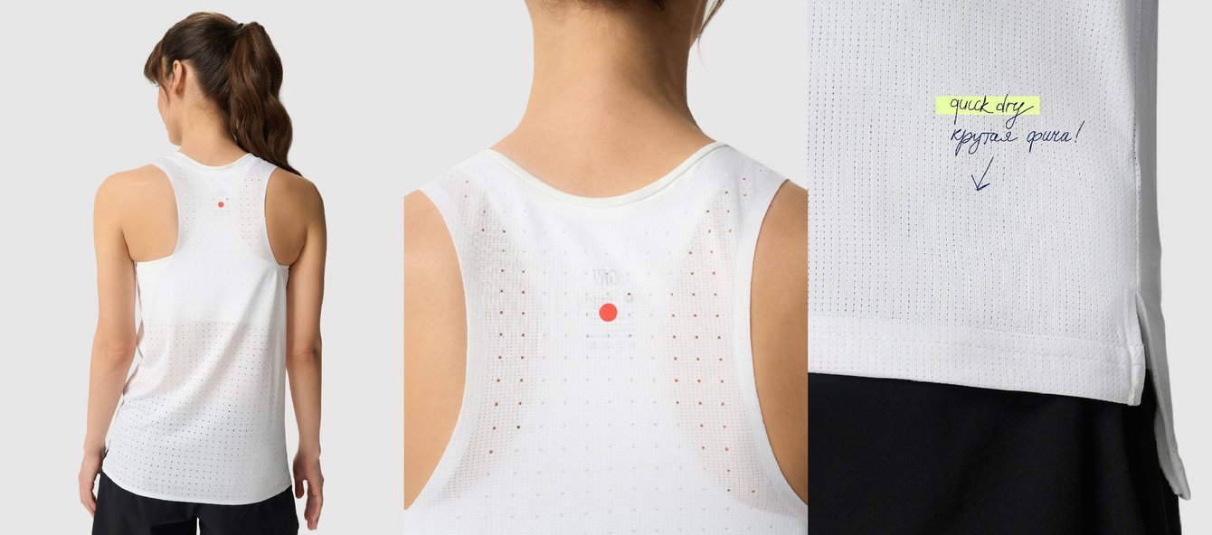 Заказчик порекомендовал производителя — бренд спортивной униформы GRI, который предлагает кастомные решения для брендов на основе своих разработанных моделей. Среди этих моделей оказались варианты из Quick Dry — технологичной быстросохнущей ткани, и это для нас оказался тот случай, когда эстетика и польза сошлись в одном. Мы решили использовать этот вариант и разрабатывать дизайн на его основе.