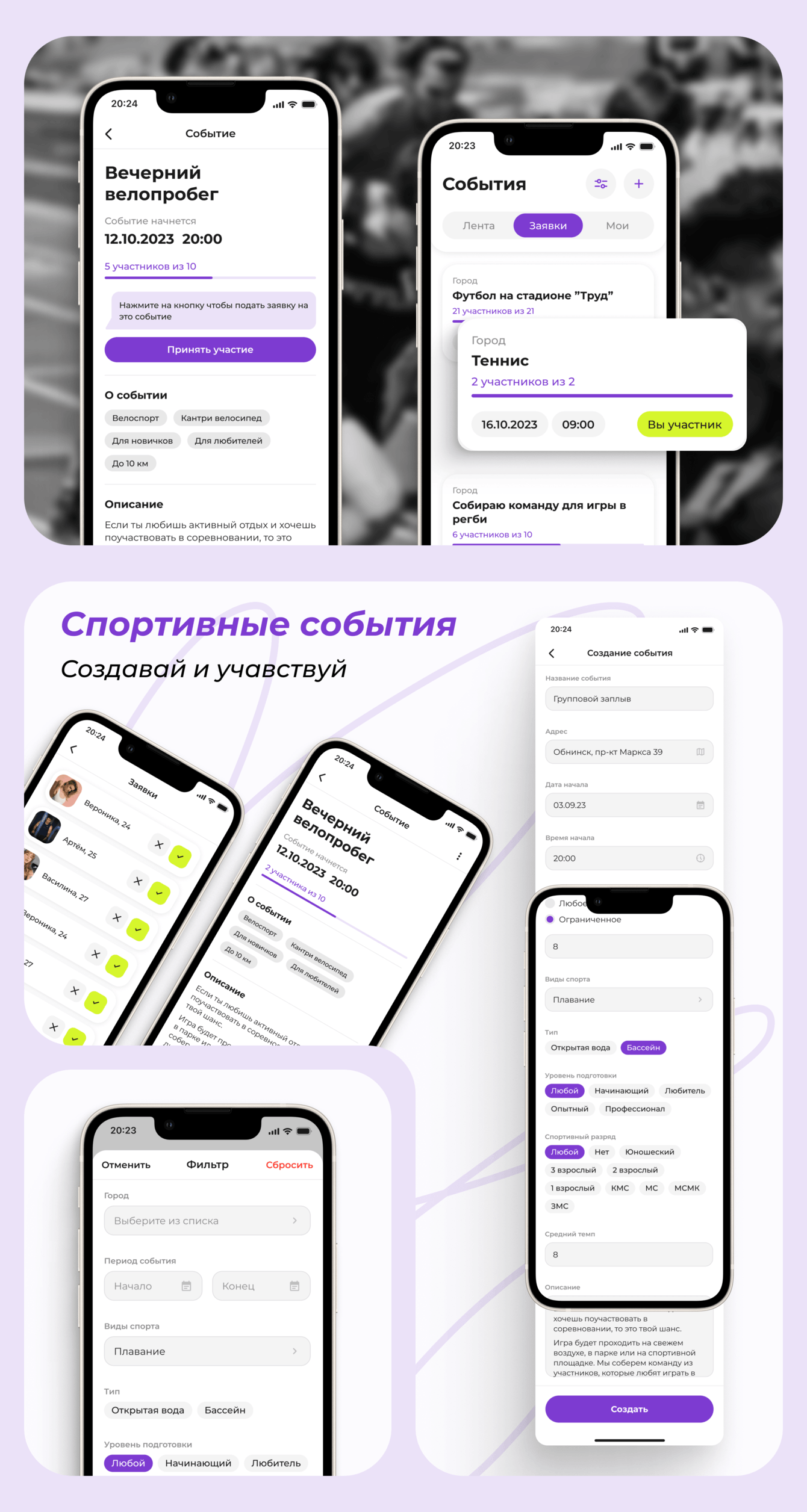 Решением этой задачи стала разработка мобильного приложения для спортсменов: профессиональных и начинающих. Пользователи быстро и легко, на основе своих интересов, могут найти спортивное мероприятие и присоединиться к нему. Также важна функция оповещения, благодаря которой своевременно и комфортно можно узнать о планируемых ивентах. И сейчас мы активно разрабатываем интеграции с крупными площадками, что позволит расширить аудиторию и повысить возможности сервиса. А пока мы дорабатываем опубликованную в релиз MVP версию.