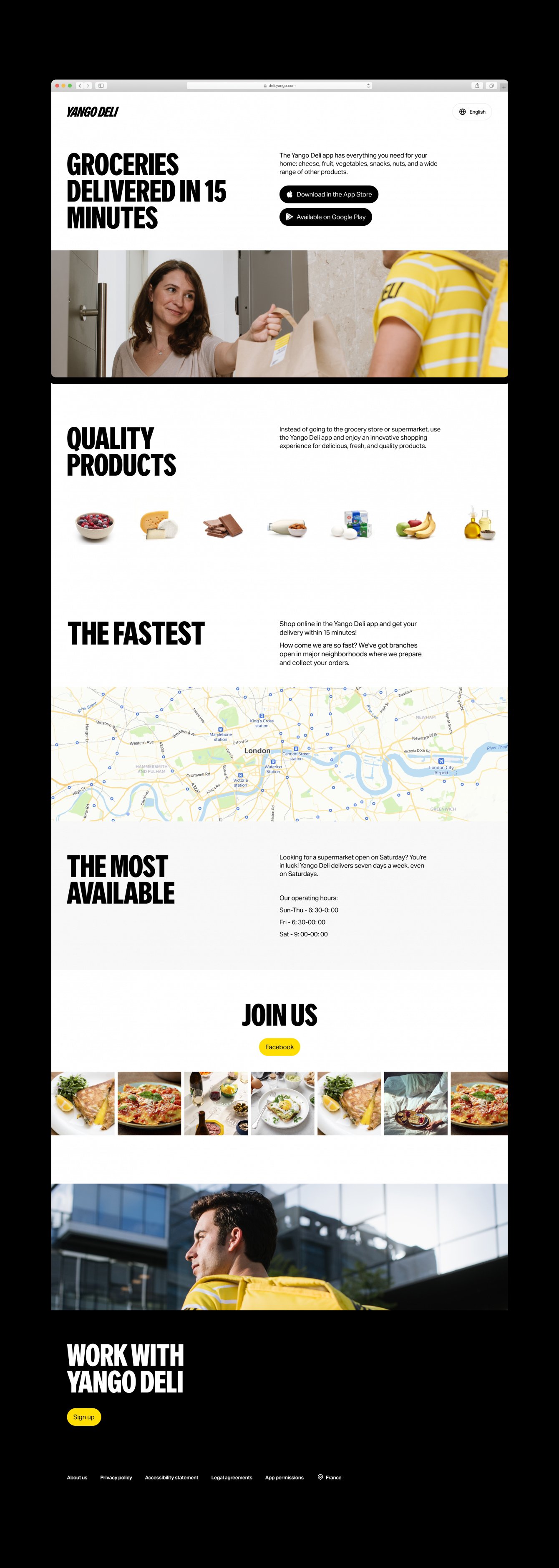 Яндекс обратился к нам с просьбой сделать сайт про новый сервис доставки продуктов Yango Deli. Это аналог Яндекс Лавки для Израиля, Франции и Великобритании.