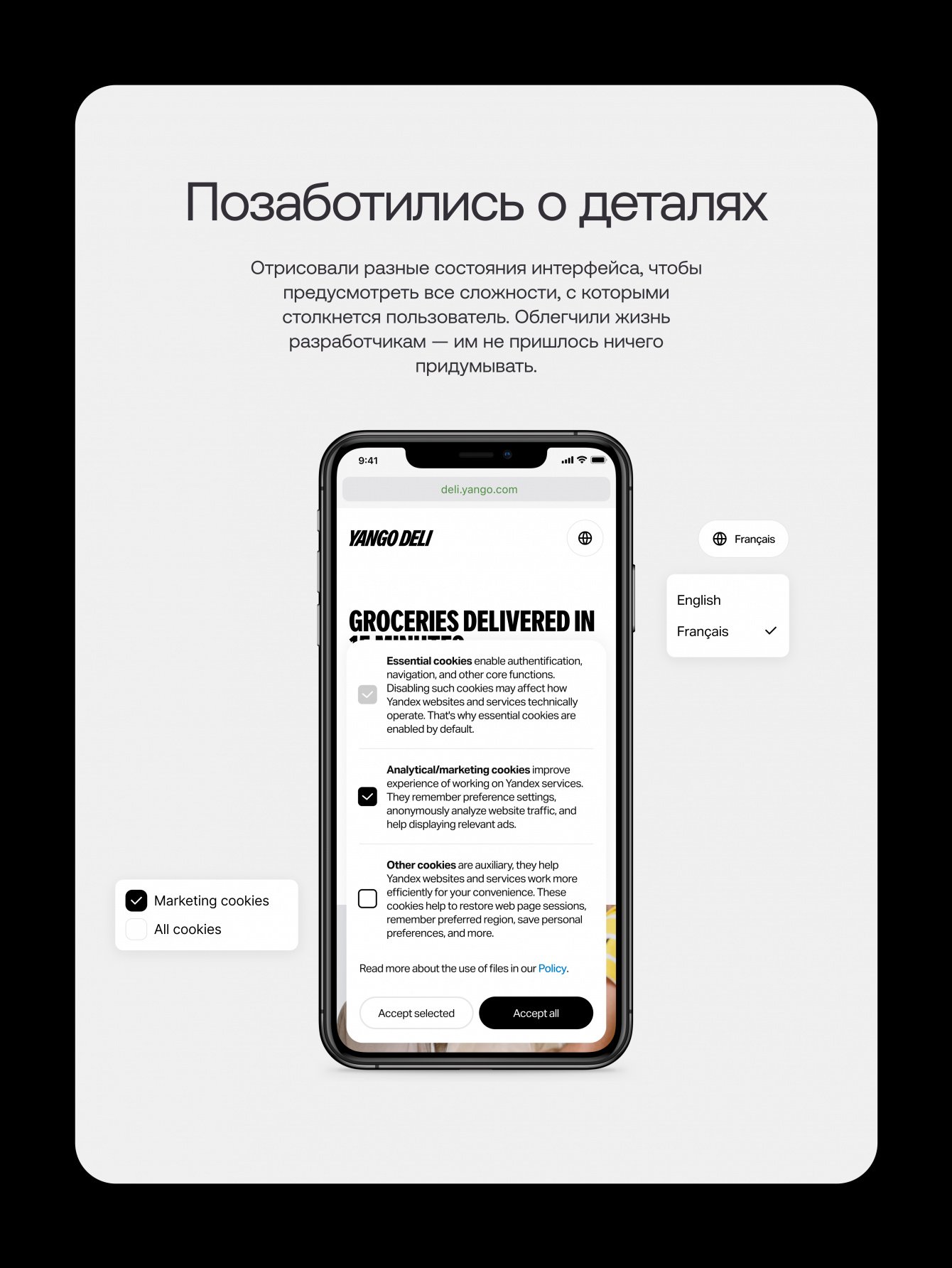 • Позаботились о деталях. Отрисовали разные состояния интерфейса, чтобы предусмотреть все сложности, с которыми столкнется пользователь. Облегчили жизнь разработчикам — им не пришлось ничего придумывать.
