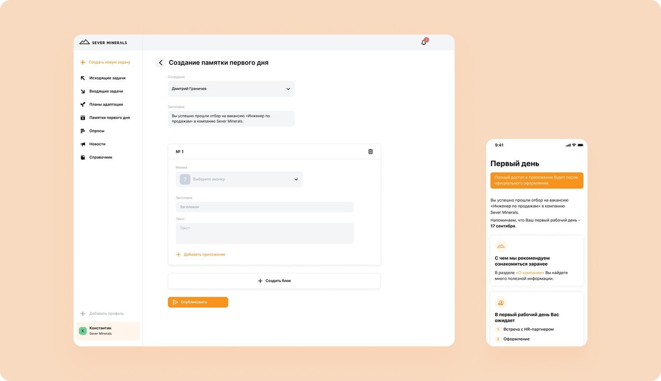 Для новых коллег будет доступен адаптационный план, который поможет быстрее влиться в компанию и сориентироваться во внутренних процессах. За первый месяц приложение скачала треть сотрудников компании. Ожидаем, что количество пользователей будет только расти. В планах интеграция с другими внутренними системами Sever Minerals, чтобы создать великий и ужасный суперапп.