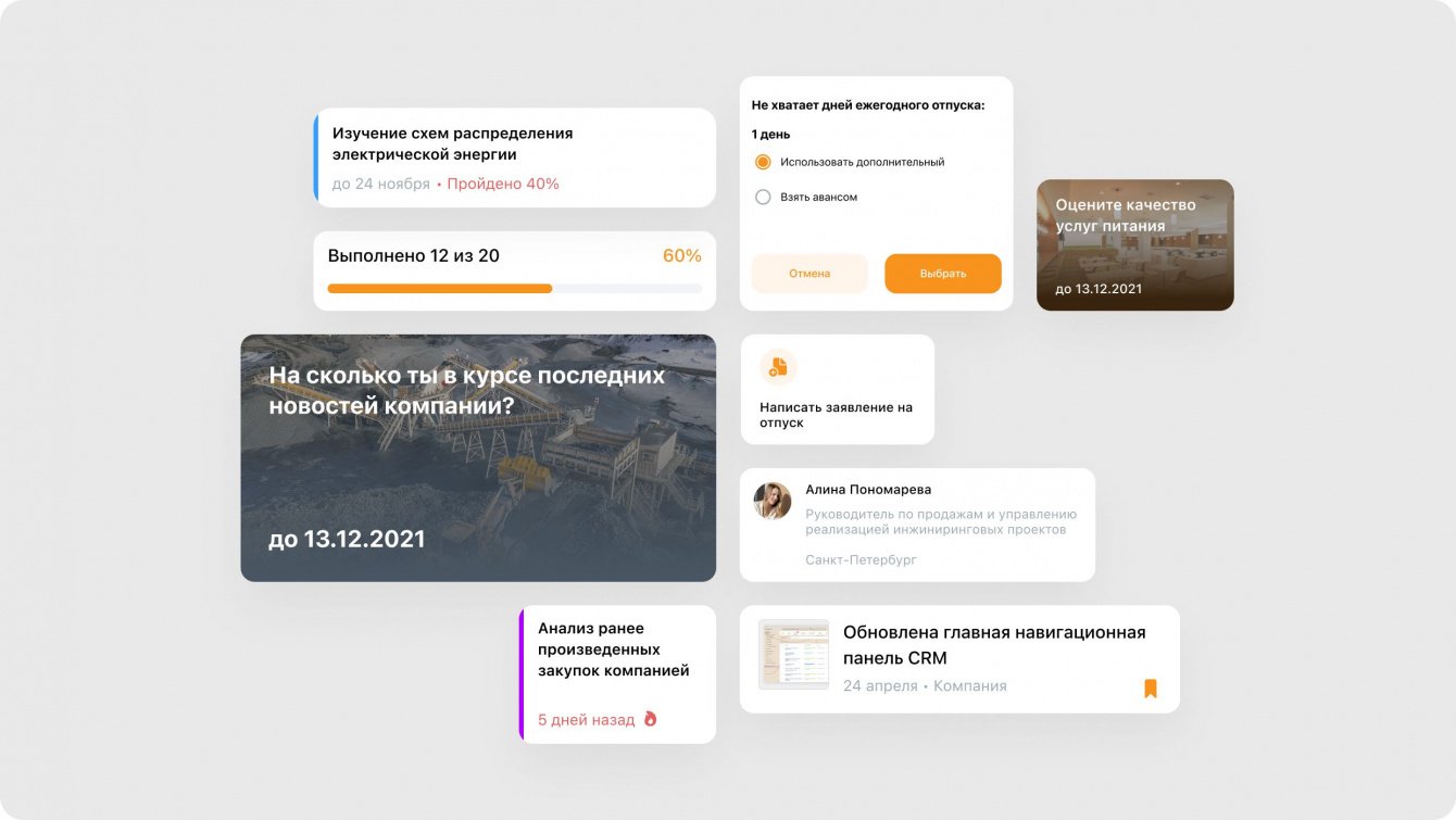 Появился доступ к последними новостями компании, он может просматривать расчетные листки, искать контактные данные коллег, проходить опросы и делиться обратной связью, обновлять персональные данные.
