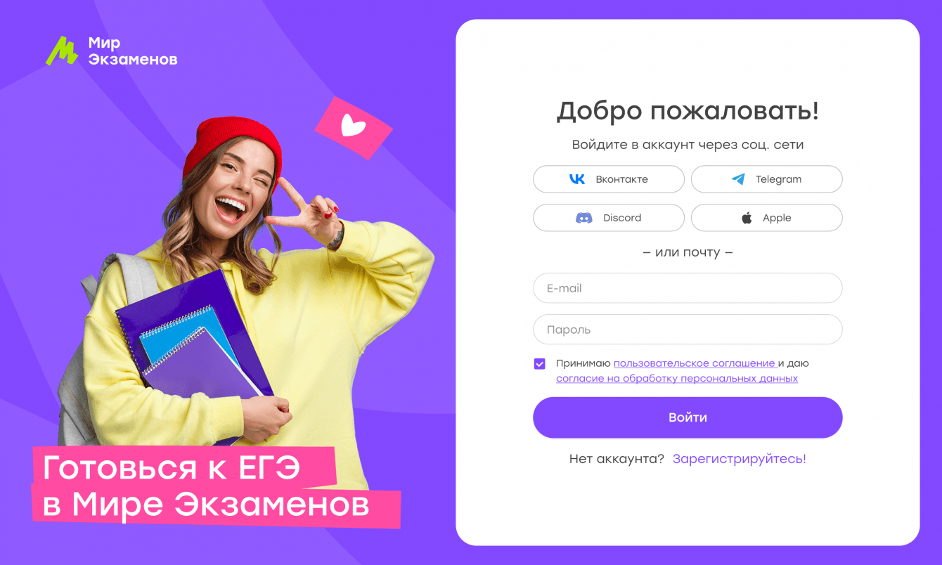 «Мир Экзаменов» — платформа для подготовки к ЕГЭ и ОГЭ. На сайте есть тренажер для решения заданий по всем предметам и полезные учебные материалы.