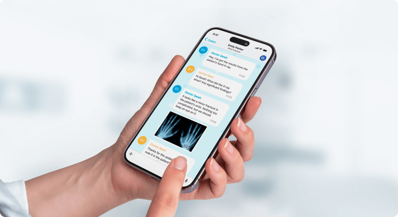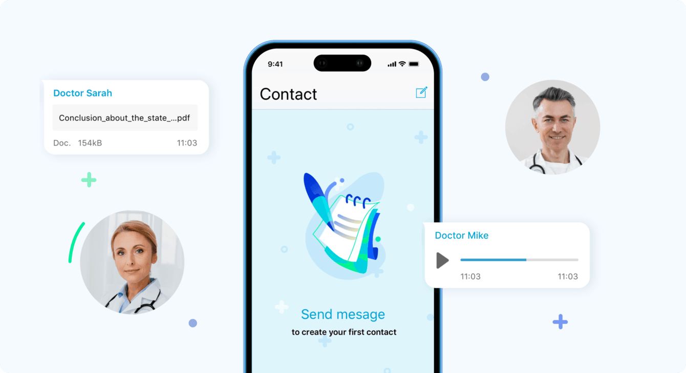 Приложение позволяет создавать чаты как для индивидуального общения между врачами, так и для организации рабочих коллабораций. Каждый диалог отличается уникальной маркировкой фона.