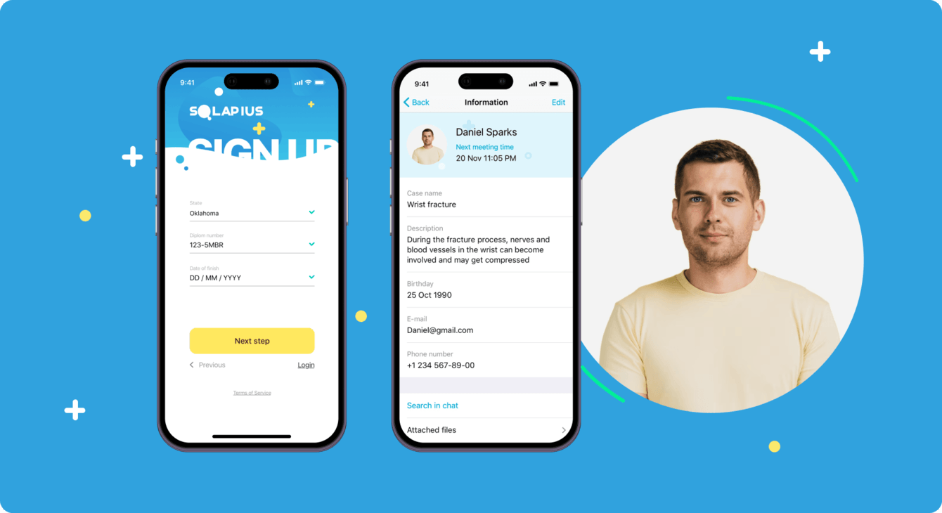 Задача была разработать приложение для врачей, которое поможет совместно консультировать пациентов, систематизировать историю болезни при обращении к разным специалистам, а также даст безопасный доступ к обмену данными и диагнозами. Создать фирменный стиль и логотип, сделать UX/UI-дизайн приложения