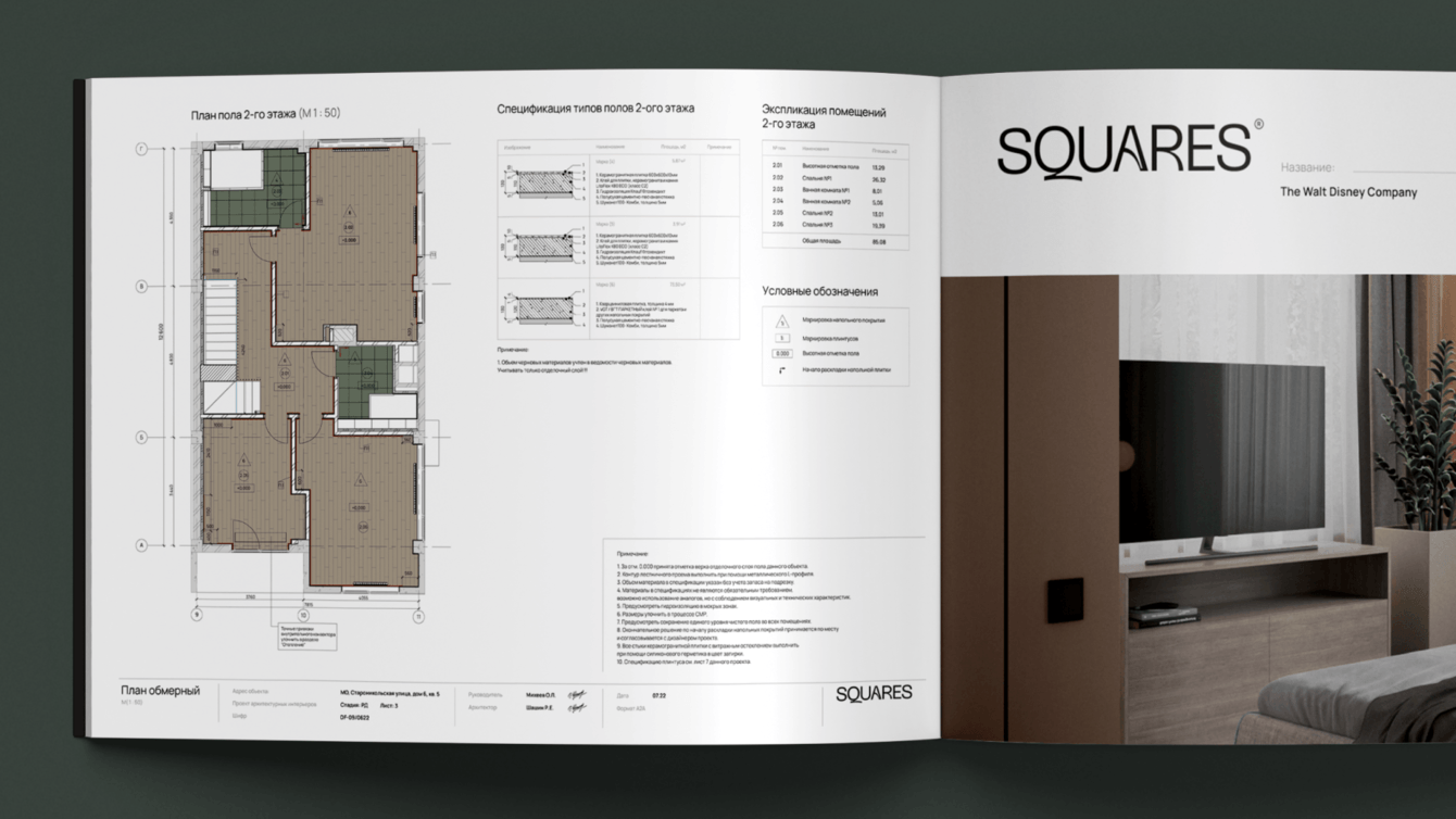 Архитектурное бюро Squares занимается созданием премиальных дизайн-проектов коммерческих и некоммерческих пространств под ключ с сопровождением клиента на всех этапах, включая проектирование и поддержку. У бюро сформирован стиль в дизайне интерьеров, где в приоритете минималистичные решения и максимально экологичные материалы. Последнее связано с безопасностью жизнедеятельности клиентов в домах, которые они создают. При разработке айдентики им хотелось придерживаться той же стилистики, использовать натуральные материалы, естественные цвета, например, глубокий зелёный, как напоминание о растениях или природный оттенок древесины. Также им было важно создать модный, «фотогеничный» дизайн, который можно легко запечатлеть на камеру и выложить в соцсети.