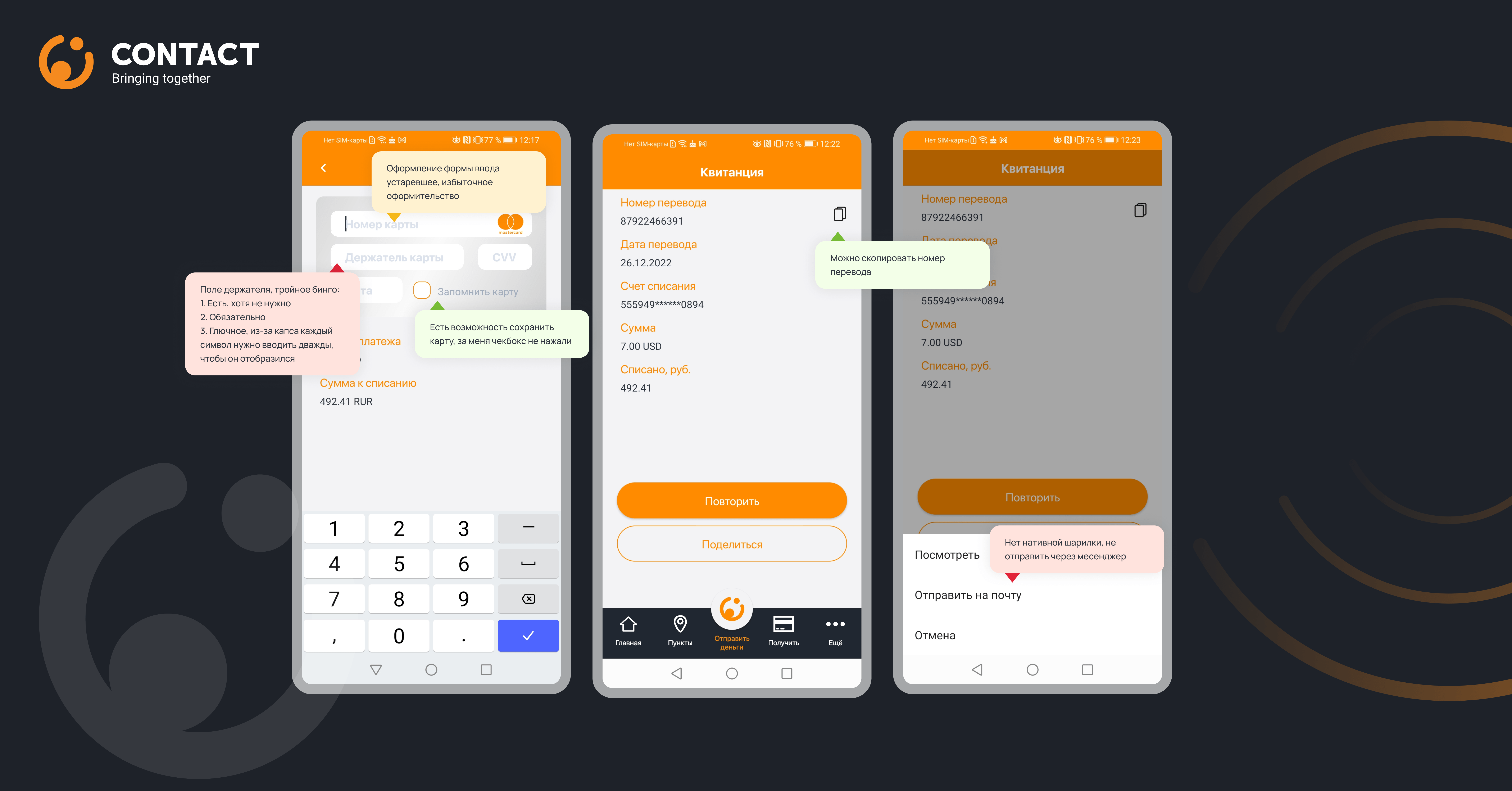 300+ комментариев к интерфейсам трёх систем денежных переводов.