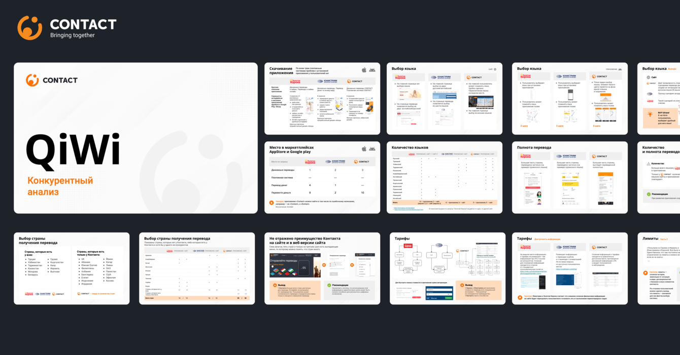 Провести сравнительный аудит сервисов по переводу денег CONTACT и двух ключевых конкурентов.
