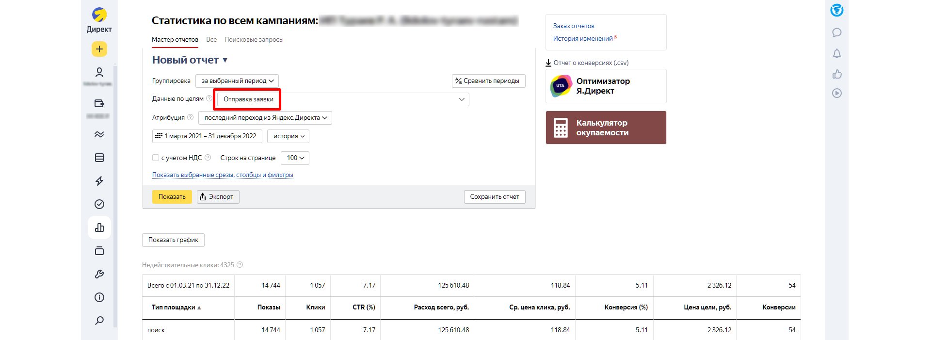 Клиент отказался подключать коллтрекинг, поэтому ориентировались только на цель "Отправка формы".