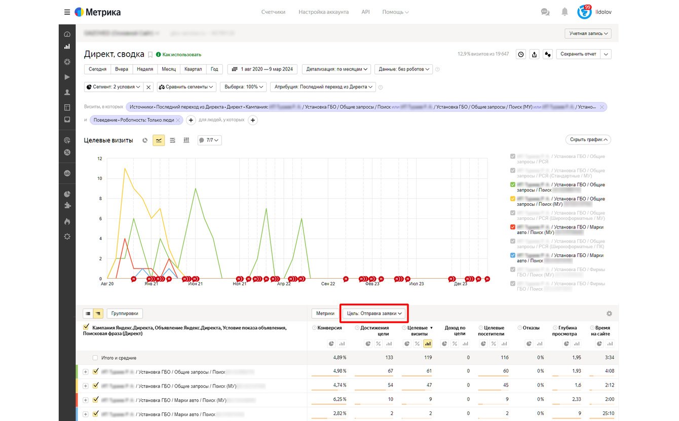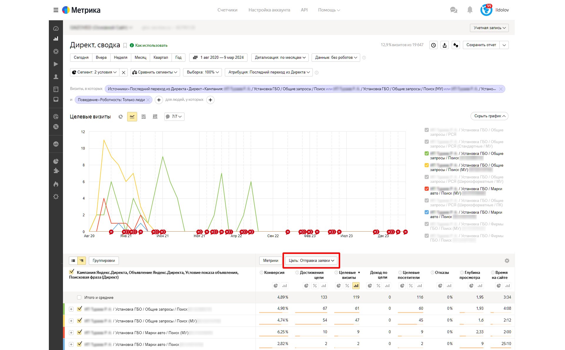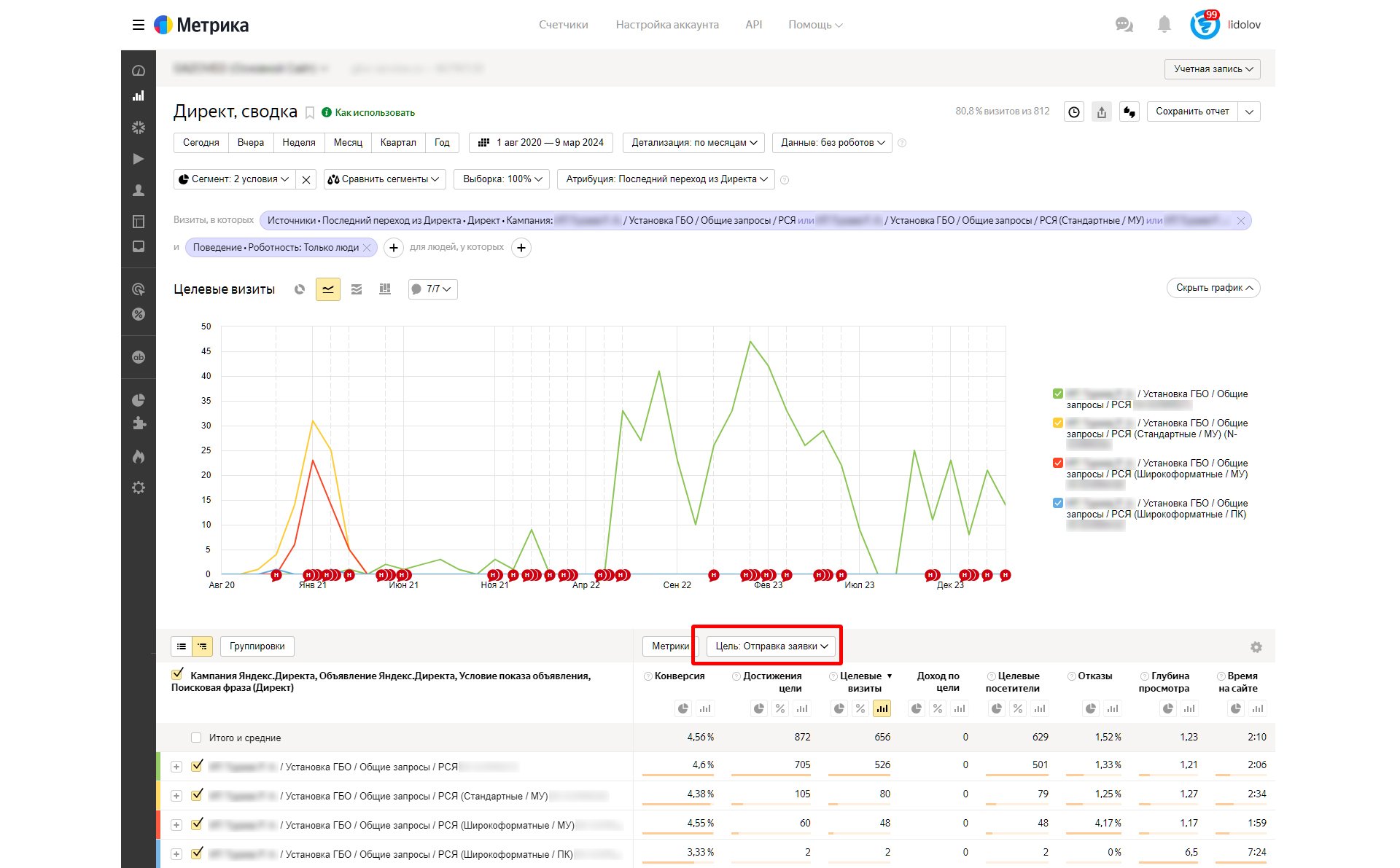 Также предлагали внедрить учёт квалифицированных заявок, но клиент не хотел дополнительно погружаться в аналитику. Поэтому анализ строился только по отправкам форм. В расчетах считали все заявки без дополнительной квалификации. При этом раз в месяц уточняли у клиента качество обращений — по его словам, около 90% заявок были реальными, без выраженного спама.