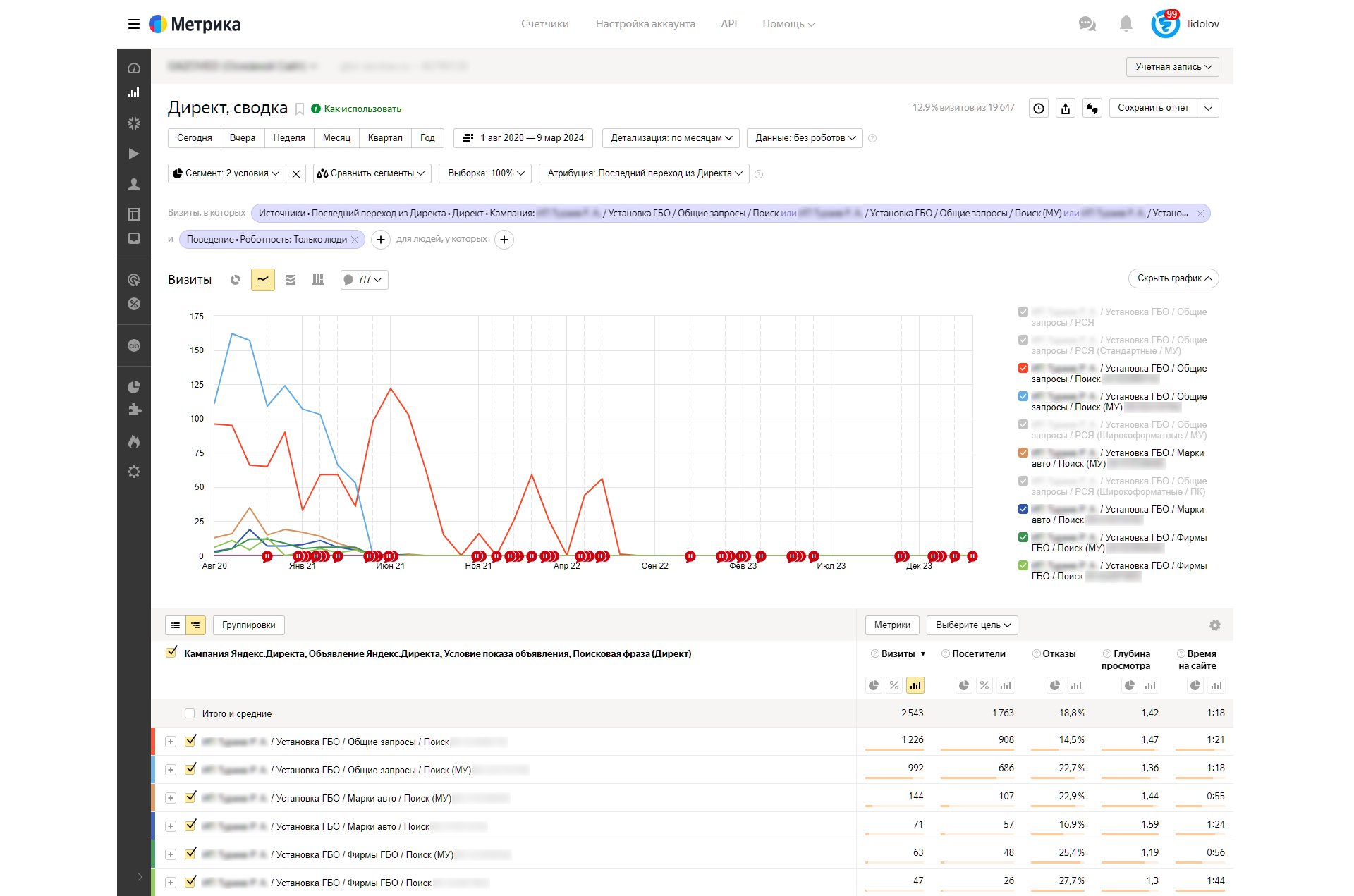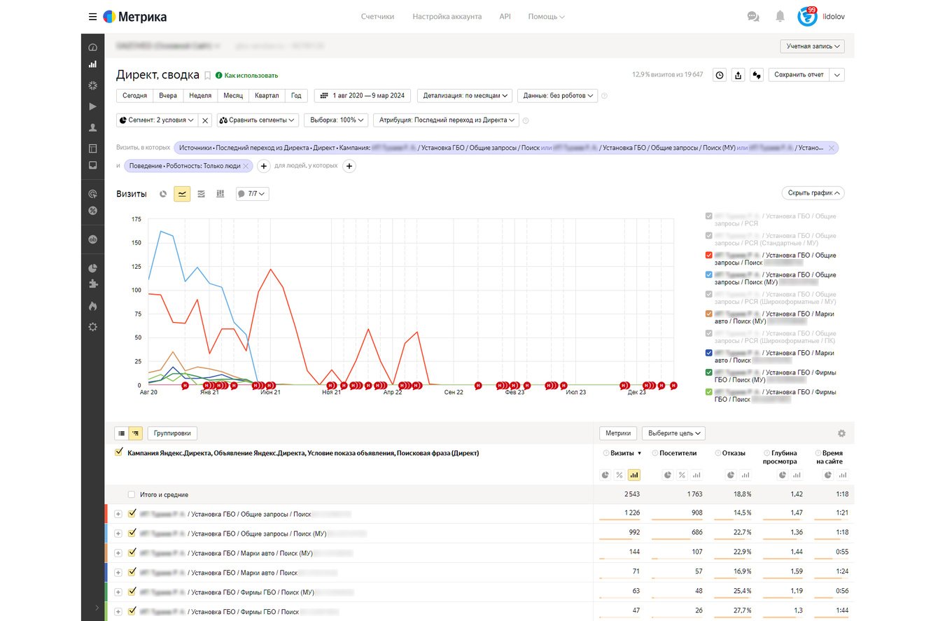 Данные из Яндекс Метрики с 2020 по 2024 год: