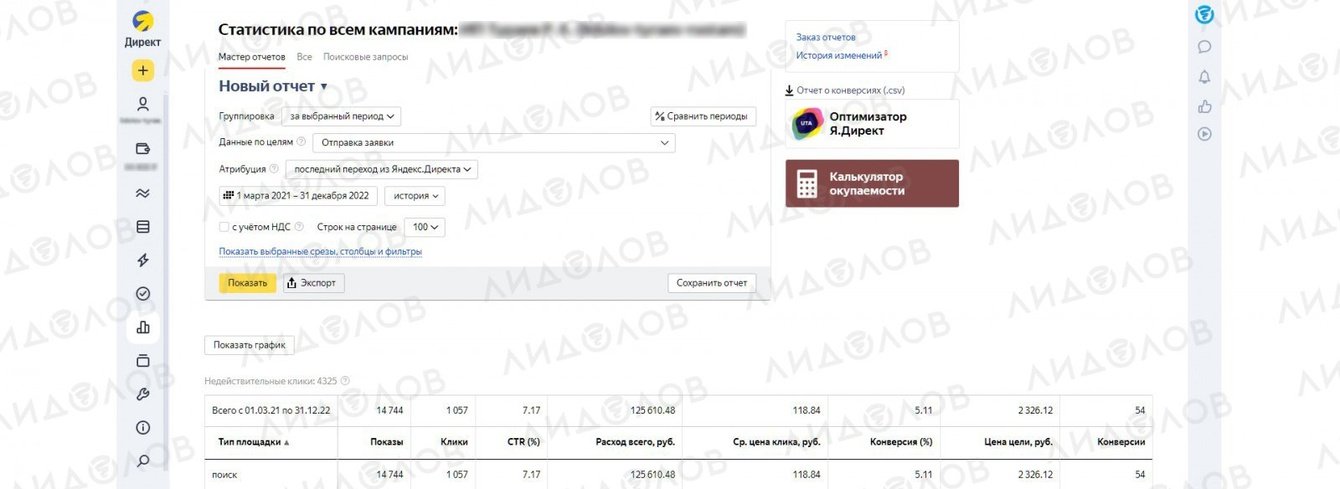 Также в Яндекс Директ статистика хранится только за последние 3 года – да, да, вовремя мы начали оформлять данный кейс :))) Поэтому данные из кабинета Яндекс Директ есть только с марта 2021 года.